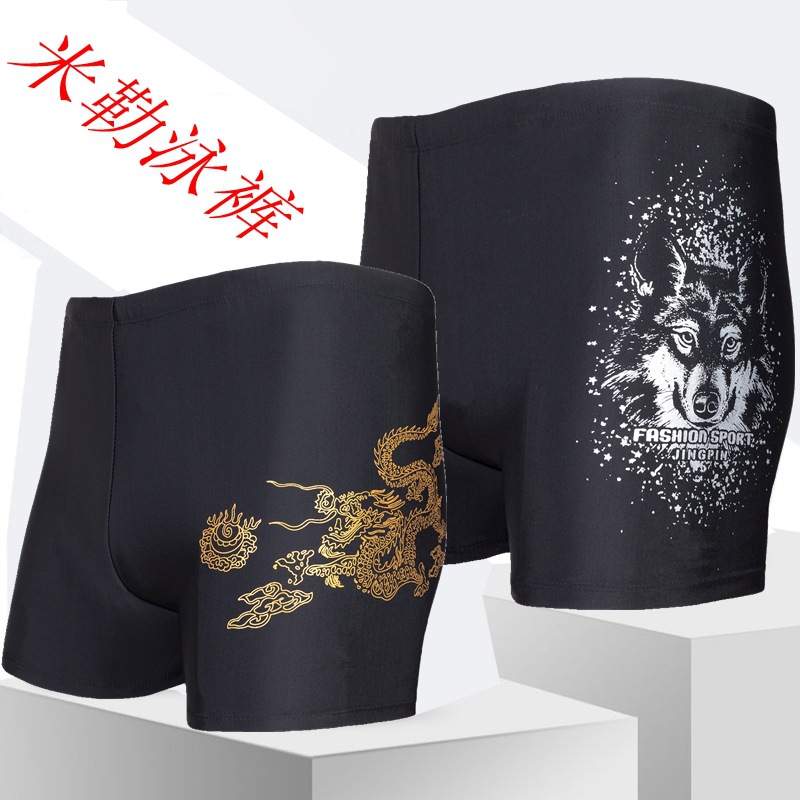 米勒2022新款泳裤男防尴尬泳装男士平角泳裤五分裤大码印花长泳裤