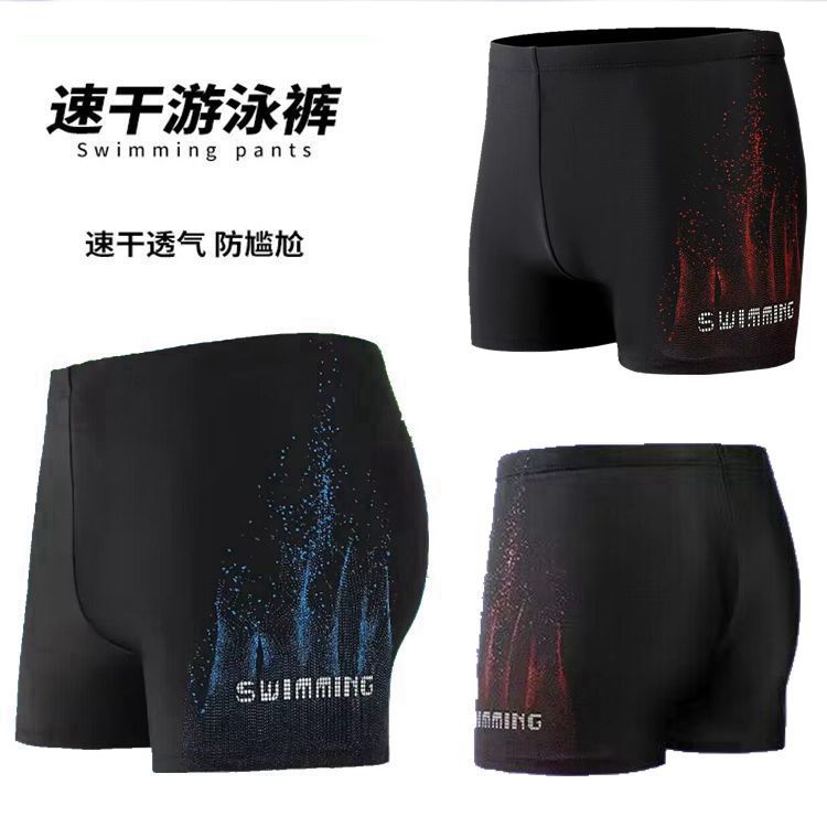 男士泳裤时尚经典火焰泳裤平角防尴尬加大码游泳装备温泉游泳裤速