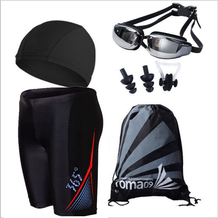 包邮成人男士泳裤套装 泳帽泳镜近视平角大码游泳衣泡温泉5件装备