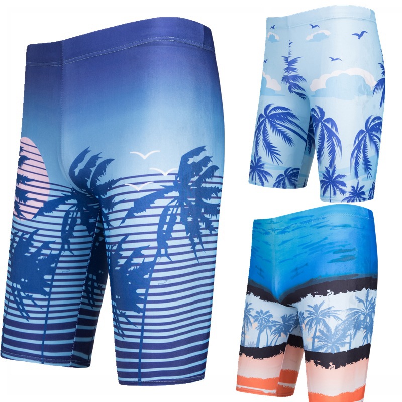 跨境泳裤男防尴尬泳装大码印花男士泳裤平角速干五分沙滩短裤衩男