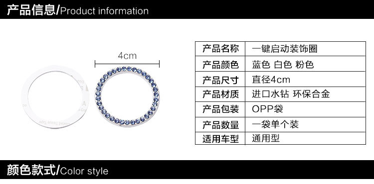 자동차 장식 스티커 크리스탈 다이아몬드 원 버튼 스타트 링 다이아몬드 링 모조 다이아몬드 스타트 키 링 장식 링