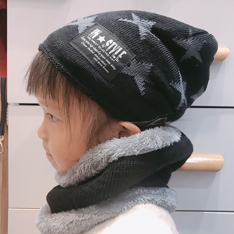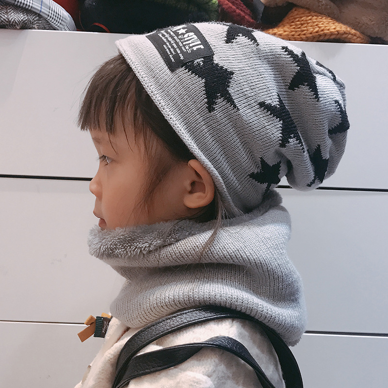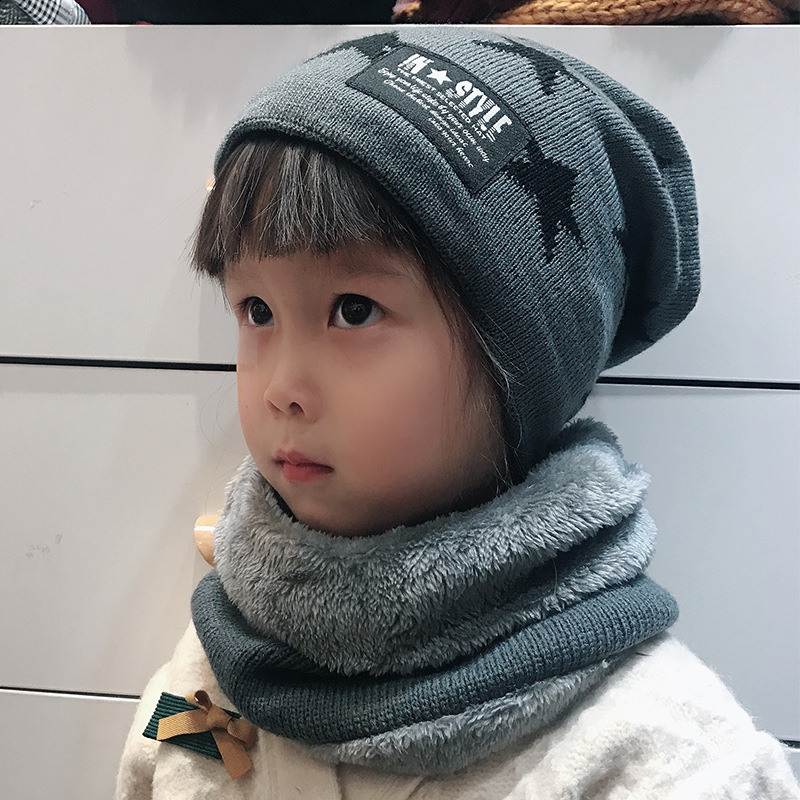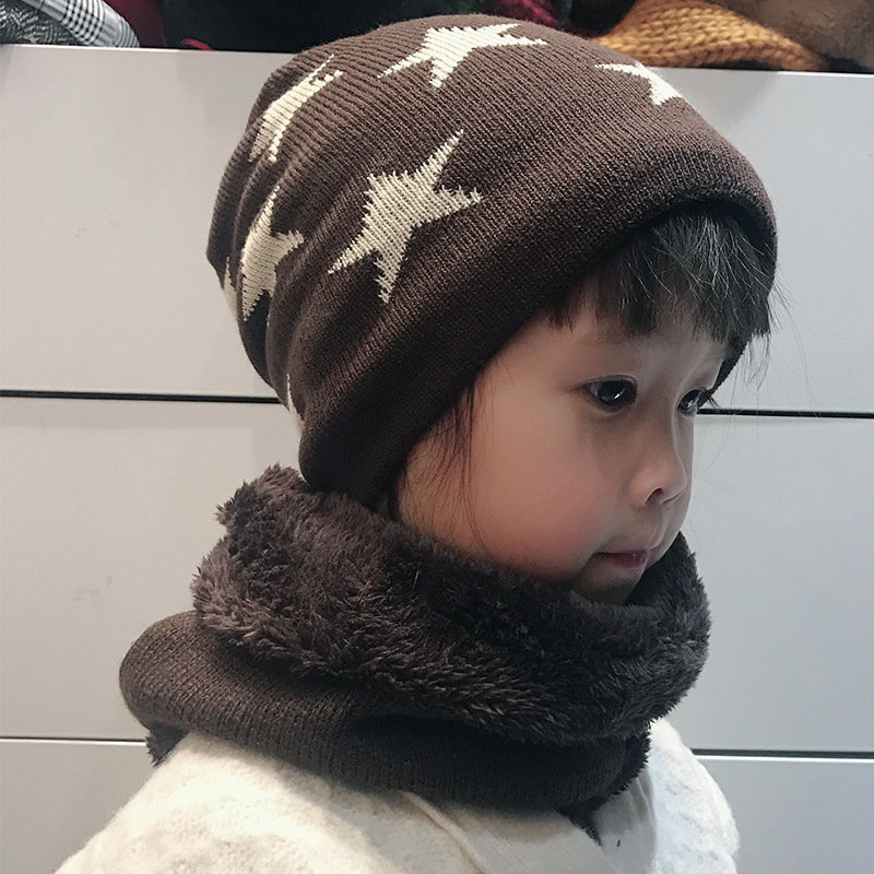 고양이 형제 한국 스타일 어린이 두꺼운 기모 울 모자 스카프 투피스 세트 아기 소년 소녀 겨울 따뜻한 커버 모자