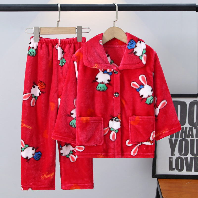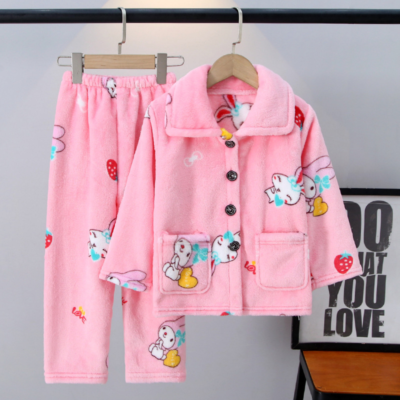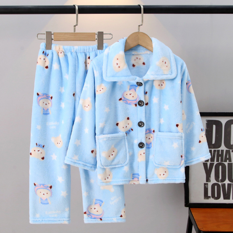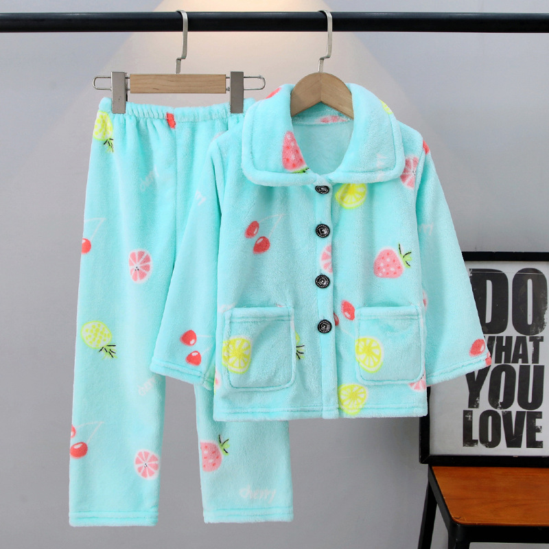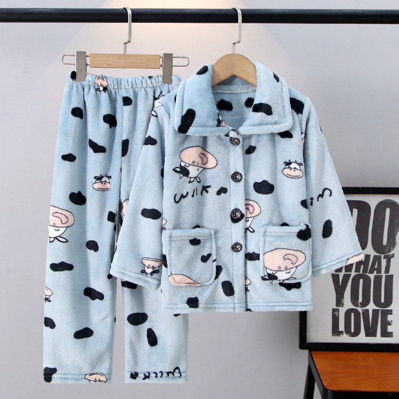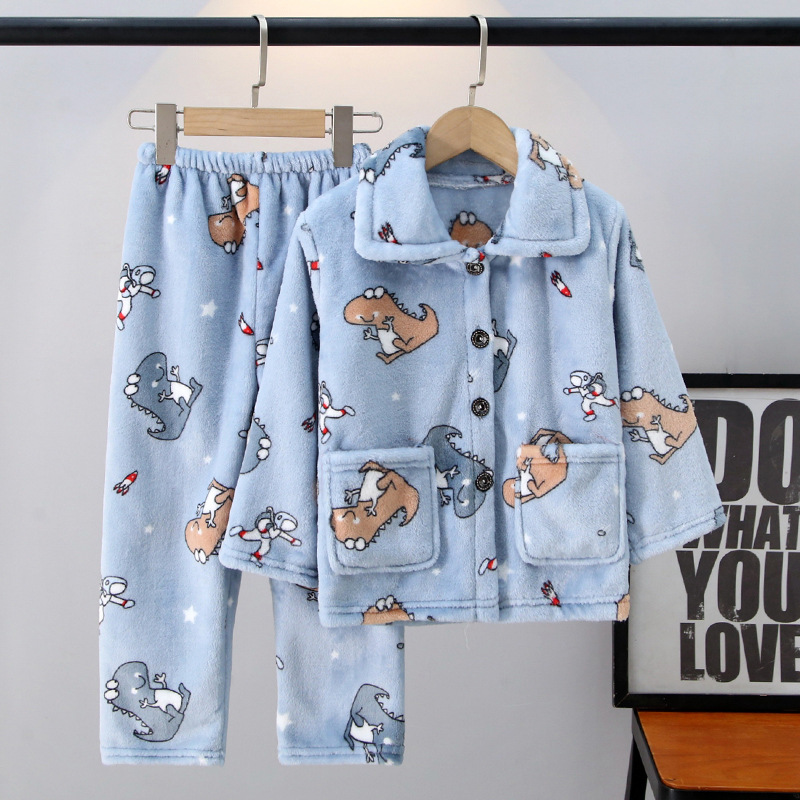 어린이 플란넬 잠옷 가을과 겨울 기모 두꺼운 소년과 소녀 산호 양털 어린이 가정 옷 세트 긴 소매