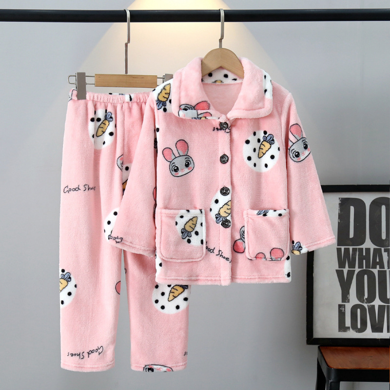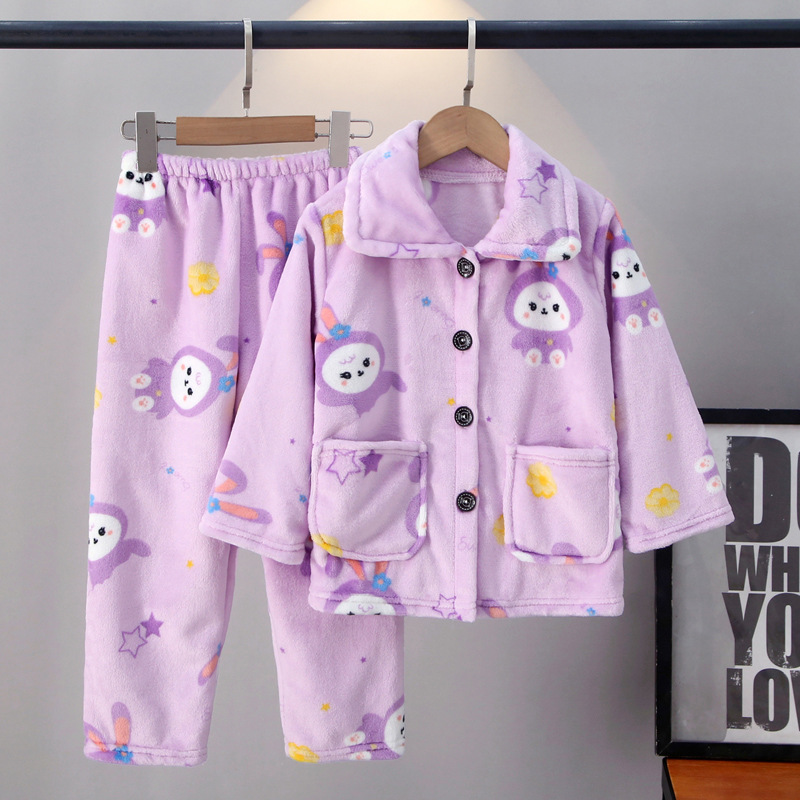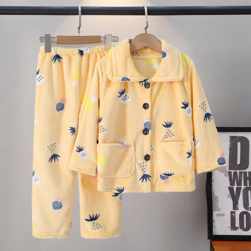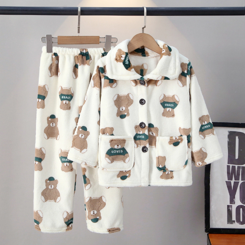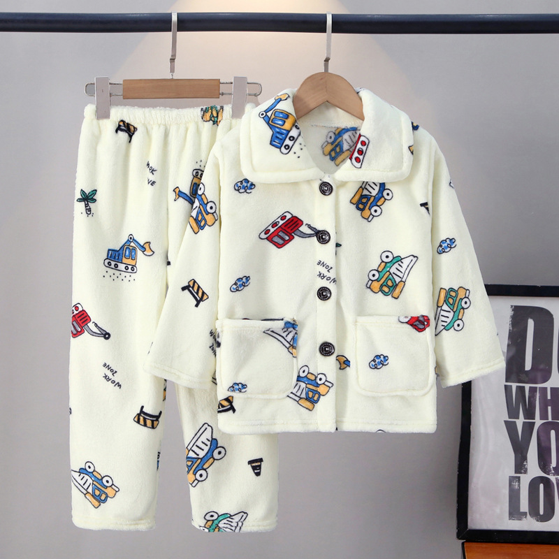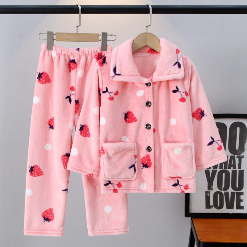어린이 플란넬 잠옷 가을과 겨울 기모 두꺼운 소년과 소녀 산호 양털 어린이 가정 옷 세트 긴 소매