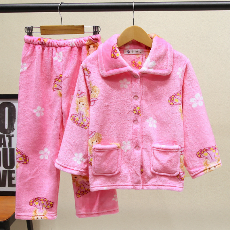 어린이 플란넬 잠옷 가을과 겨울 기모 두꺼운 소년과 소녀 산호 양털 어린이 가정 옷 세트 긴 소매스토어 가기