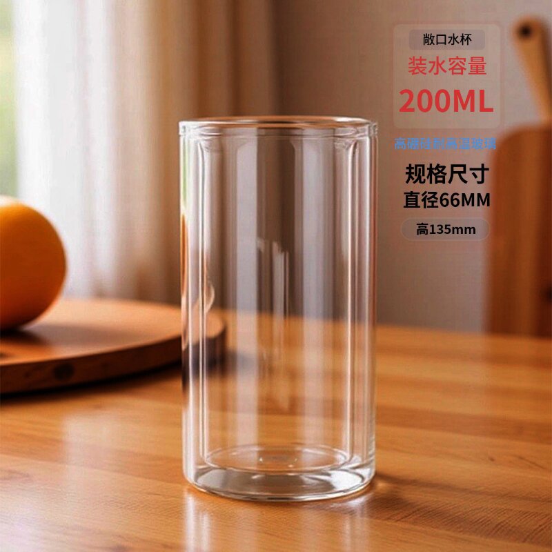 컵 유리 가정용 2 층 고 붕규산 절연 차 컵 스트레이트 크리에이티브 넓은 입 고온 내성 유리 도매스토어 가기