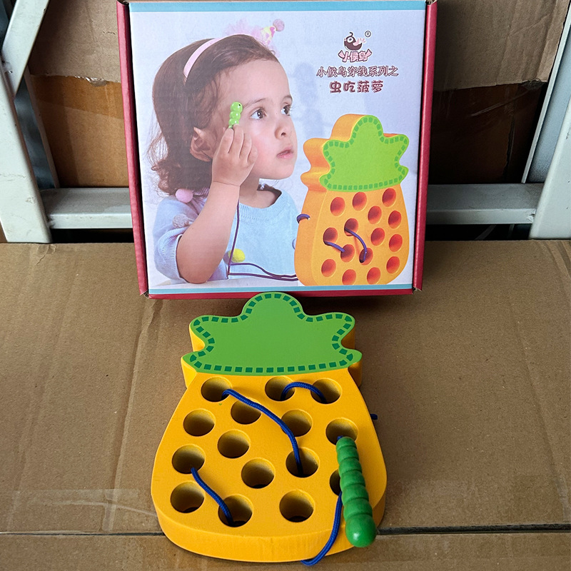 어린이 곤충이 사과를 먹는 구슬 끼우기 세밀한 운동 훈련 유아 조기 교육 교구 아기 손과 눈의 협응 장난감스토어 가기
