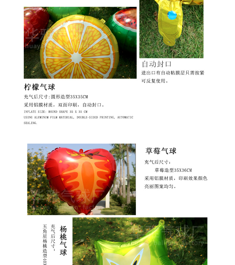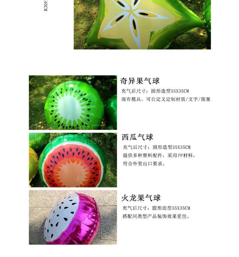재고 판매 과일 시리즈 만화 풍선 알루미늄 호일 풍선은 텍스트 패턴 로고 등이 될 수 있습니다.스토어 가기
