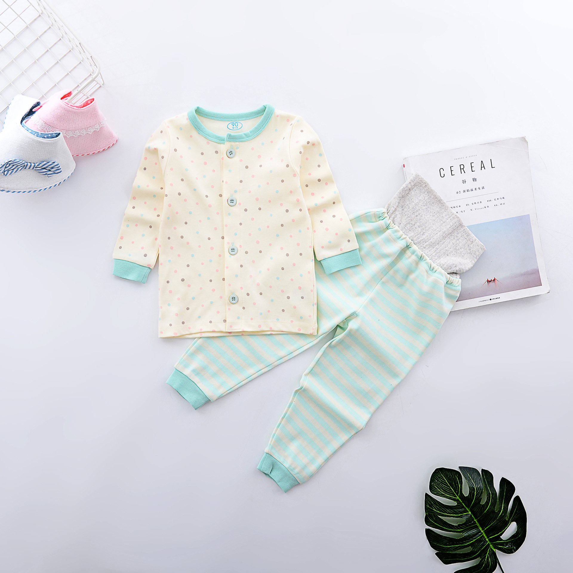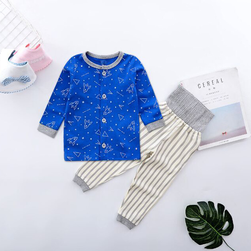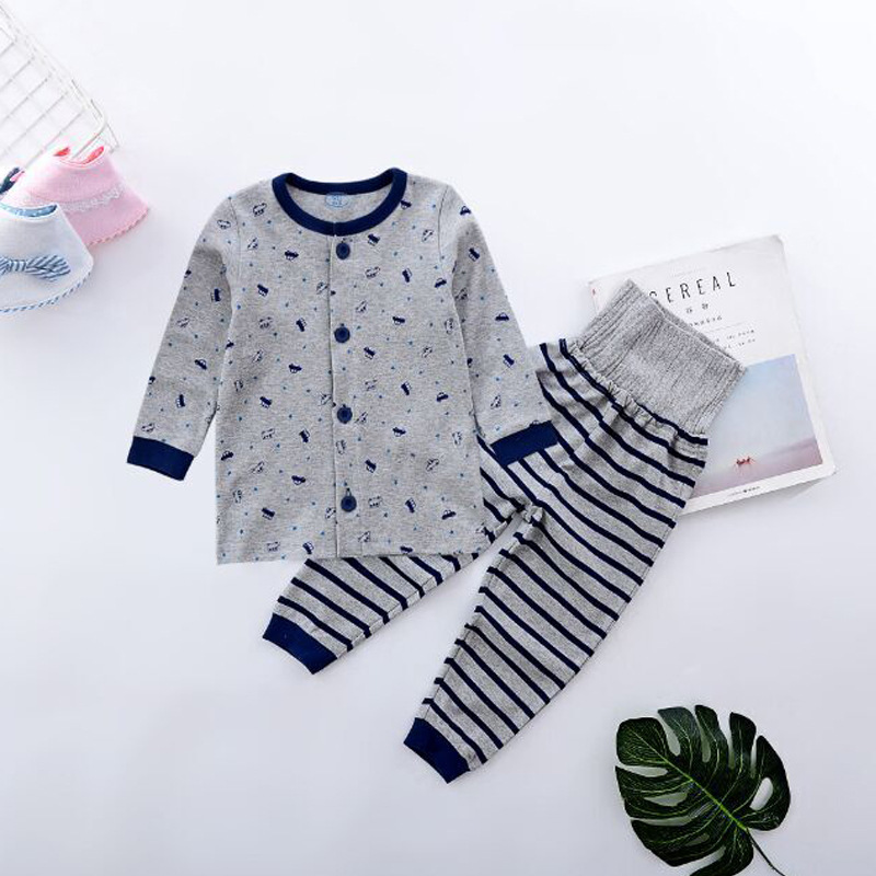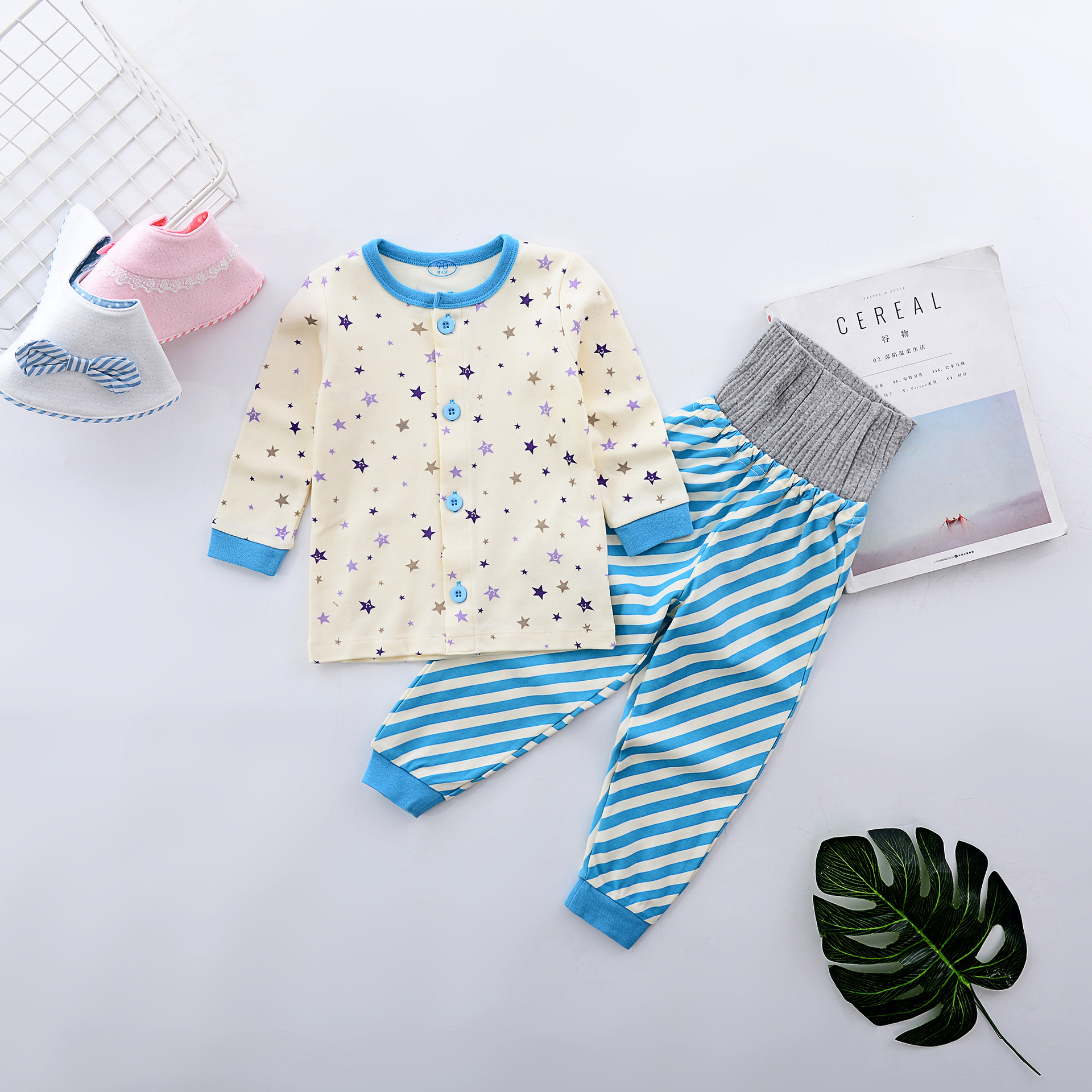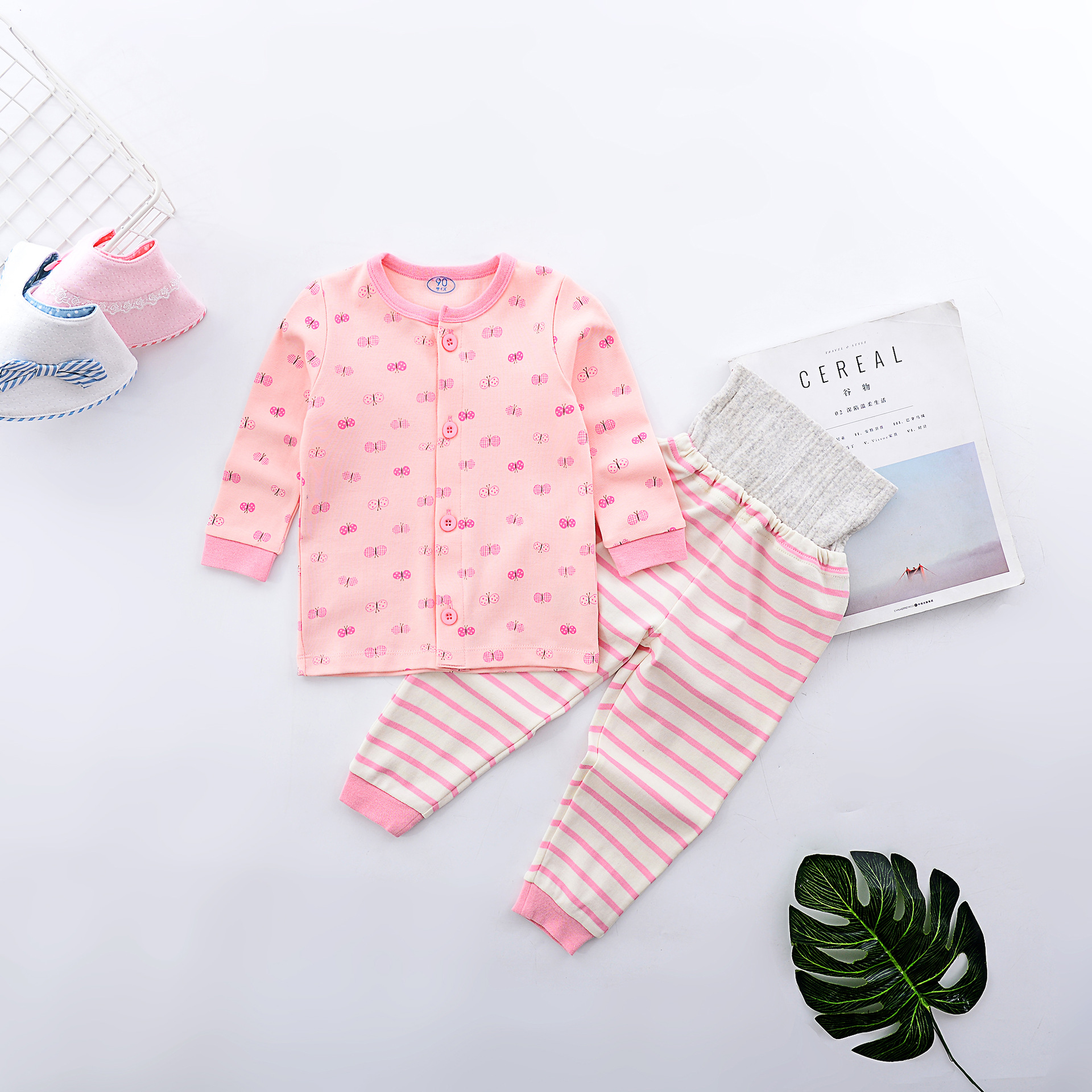 일본 신상 순면 아동 홈웨어 세트 속옷 아기 가디건 하이웨이스트 신축성 배 보호 바지 유아용