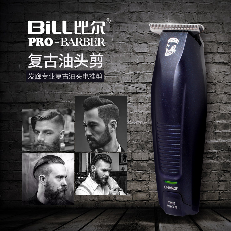 충전식 전문 레트로 오일 헤드 전기 클리퍼 조각 클리퍼스 T 타입 제로 커터 헤드 라이트 커팅 헤드 레터링 푸시 화이트 미용실스토어 가기