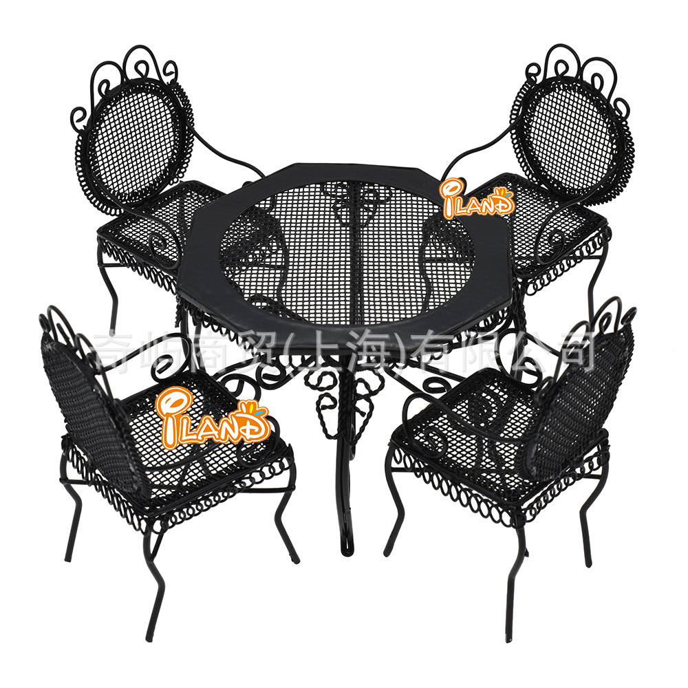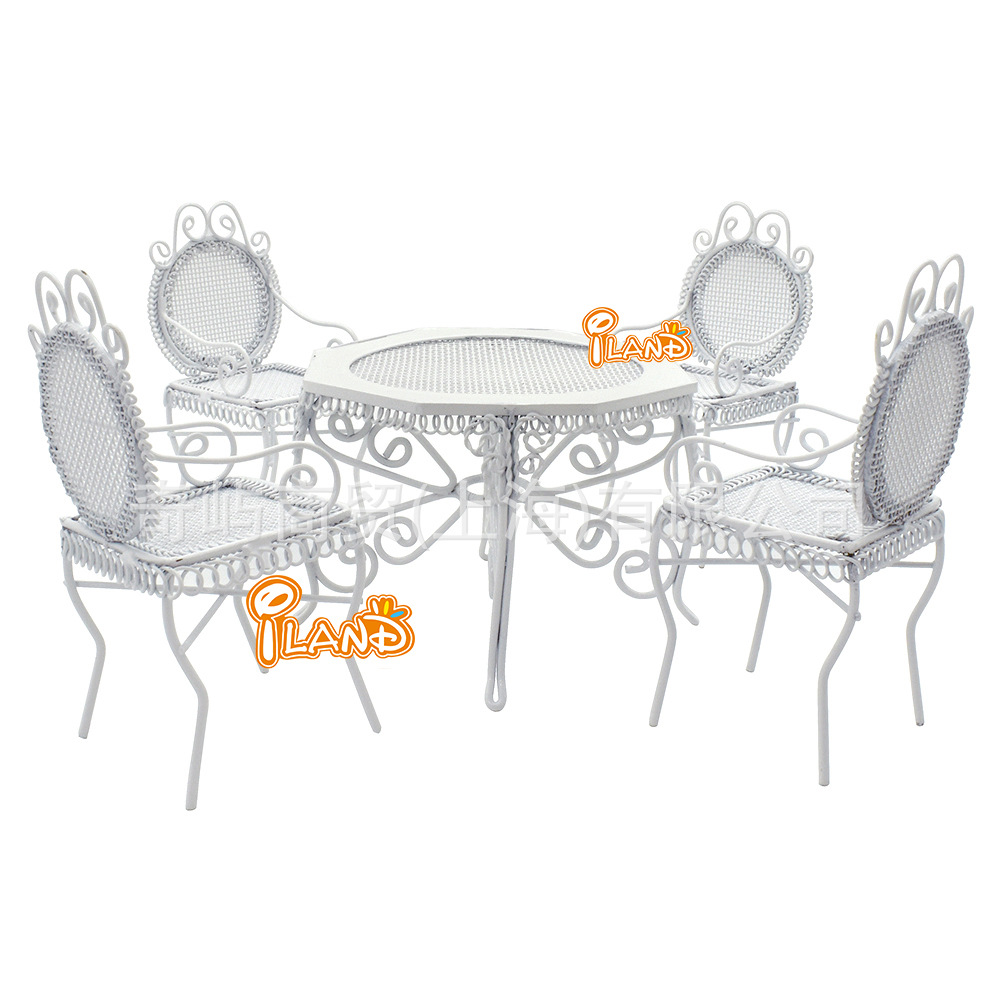 1:12 인형 집 인형 집 DIY 코티지 미니 야외 정원 가구 단철 테이블과 의자 5 개 세트