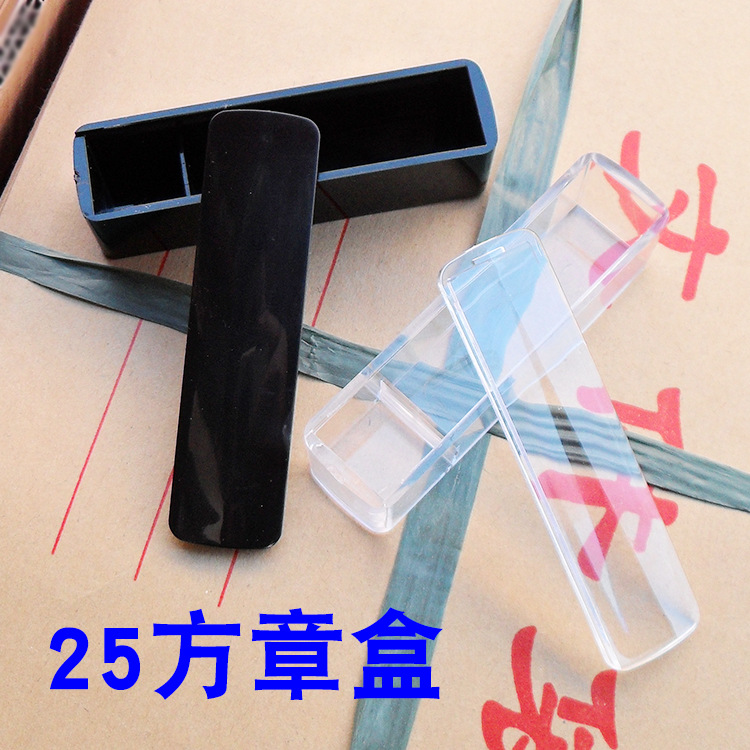 25章盒,透明黑色两款选,放25*25*70方名章,2.5元/个