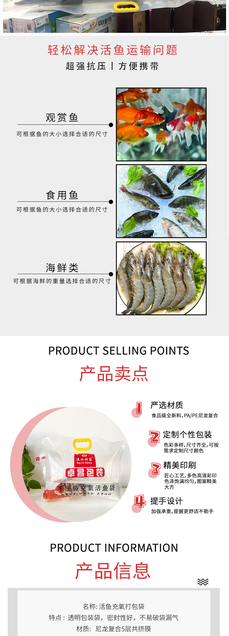 휴대용 천 섬 호수 물고기 풍선 가방 고등어 산소 운송 가방 해산물 수산물 선물 가방 뚱뚱한 머리 물고기 포장 가방스토어 가기