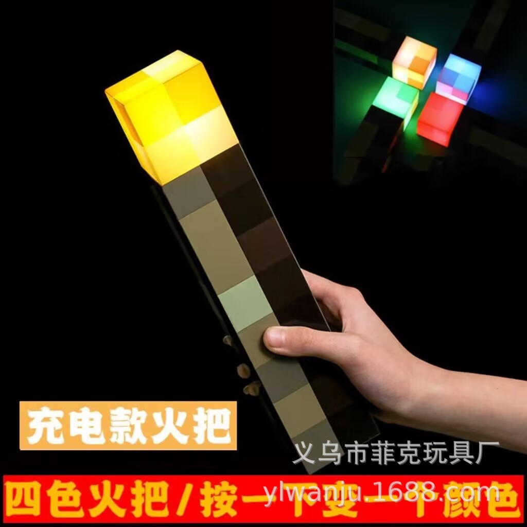 마인크래프트 게임 주변기기 MC 장난감 광부의 램프 벽돌 칼 교육용 2-in-1 횃불 물약 색상변경 활과 화살