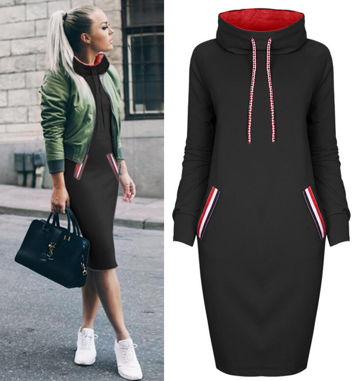 아마존 원피스 AliExpress 아마존 폭발 4 색 긴 소매 하이 넥 땀 원피스