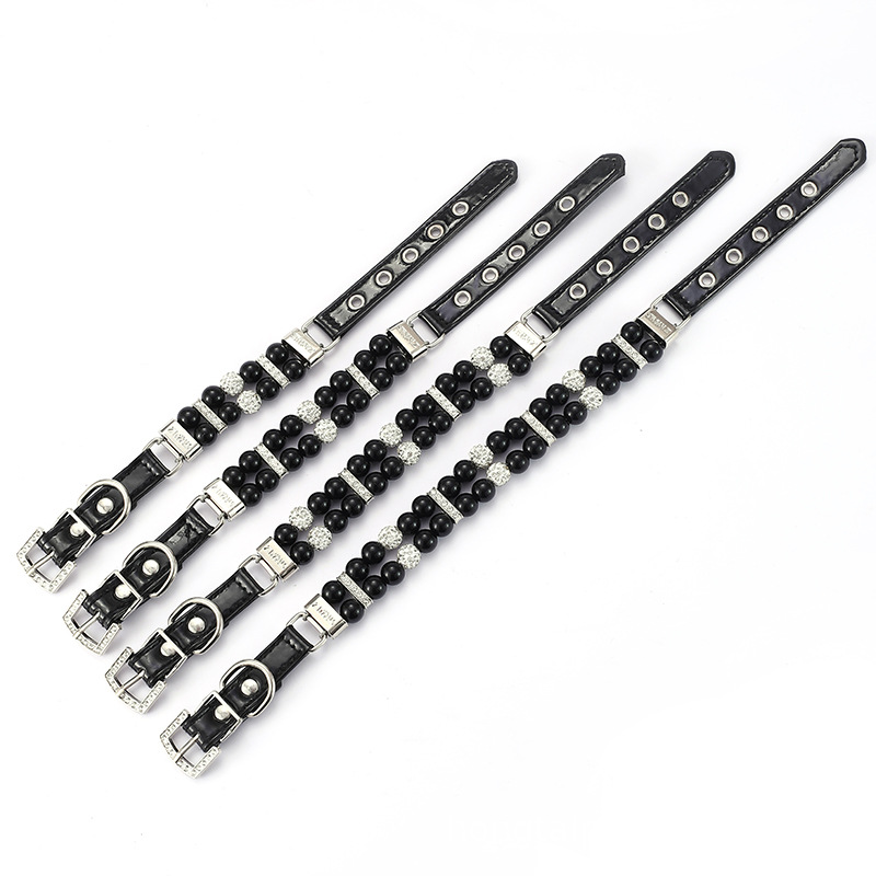 Zhous 애완 동물 진주 칼라 견인 로프 칼라 고양이 개 목걸이 보석 중형 및 소형 개 개 고리 고리