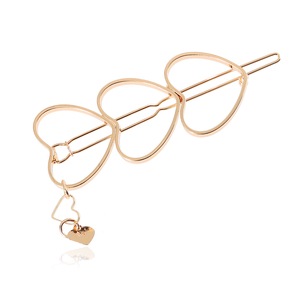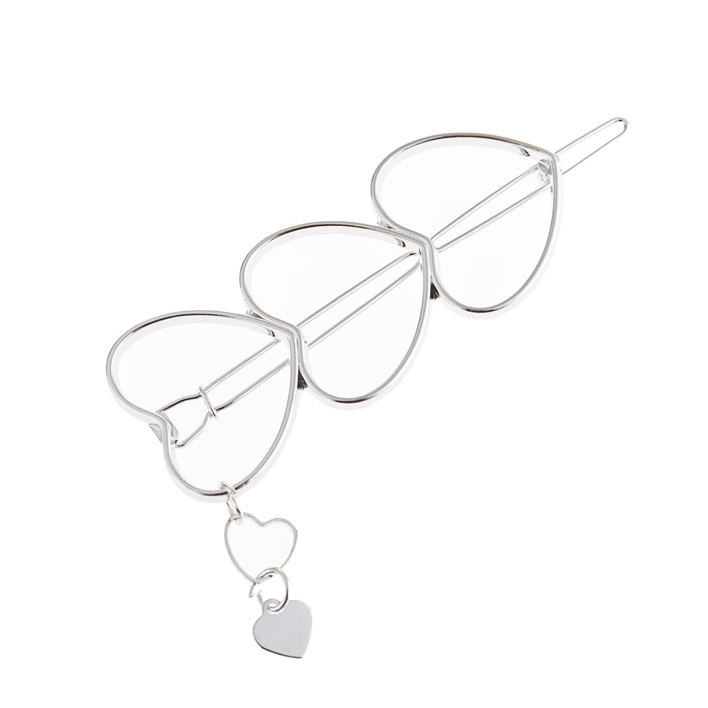 유럽풍 메탈릭 연속 하트 머리핀, 한 화살에 세 개의 하트, 패셔너블한 헤어 액세서리, 작은 펜던트 머리 장식, 하트 머리핀
