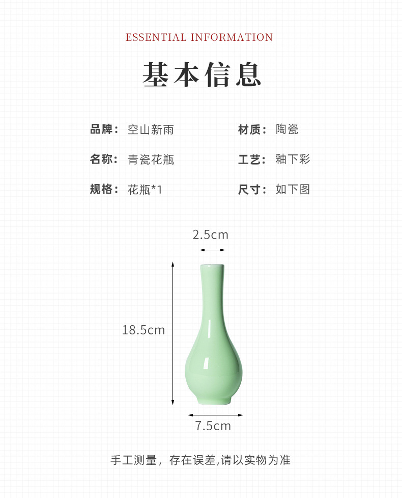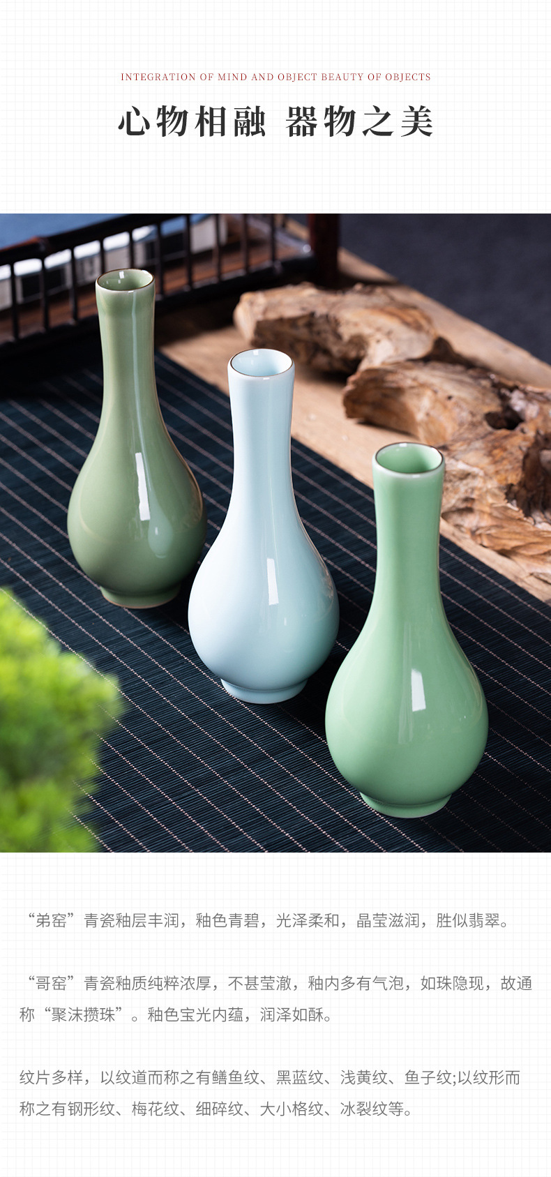 Kongshan 새로운 비 Longquan 청자 관음어 순수 물병 세라믹 꽃병 꽃병 새로운 중국 스타일 홈 액세서리 장식품스토어 가기