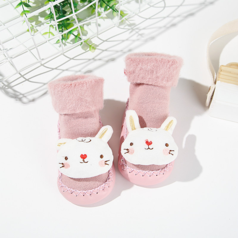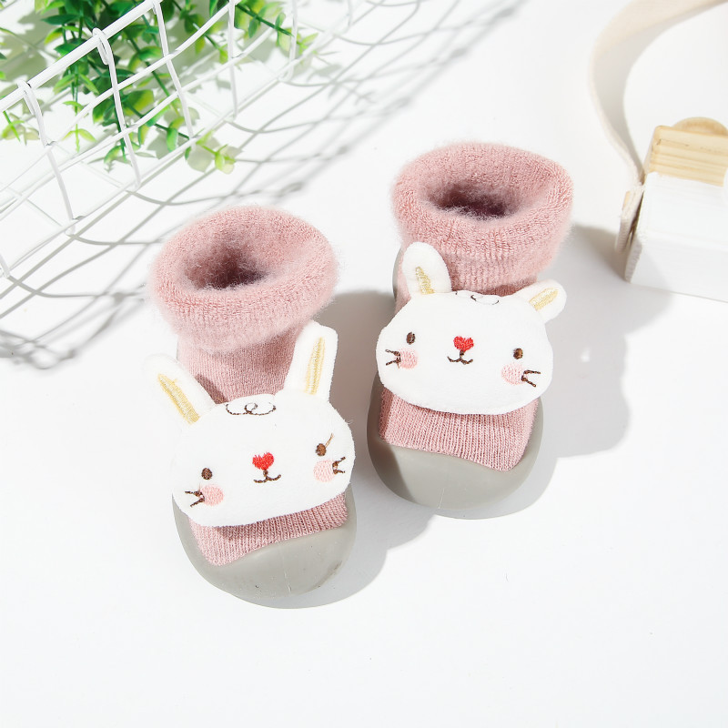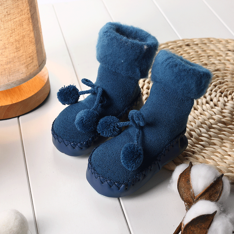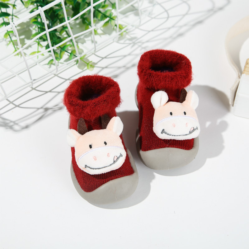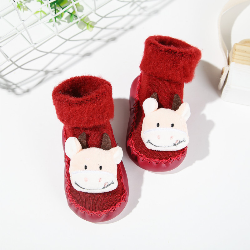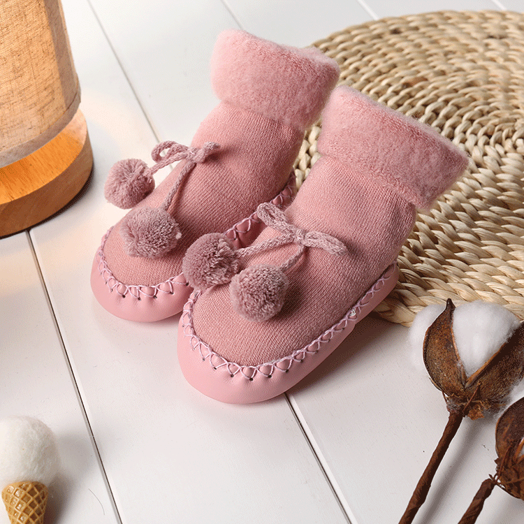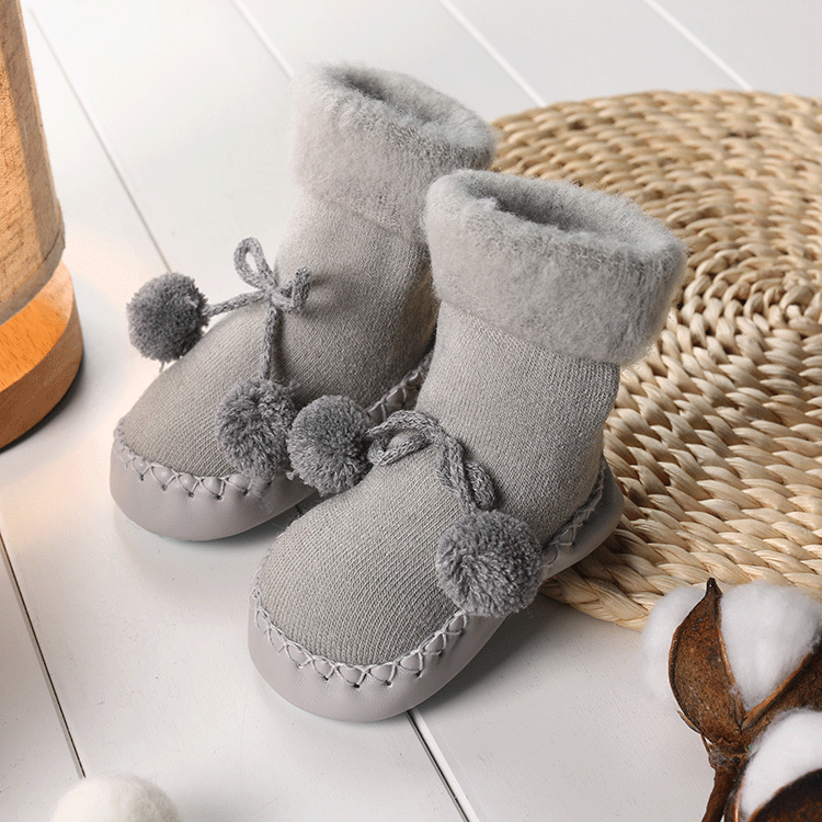 2024년 신형 바닥 양말 아기 어린이용 두꺼운 플러시 보온 걸음마 신발 미끄럼 방지 유아 남아 여아 신발 양말스토어 가기