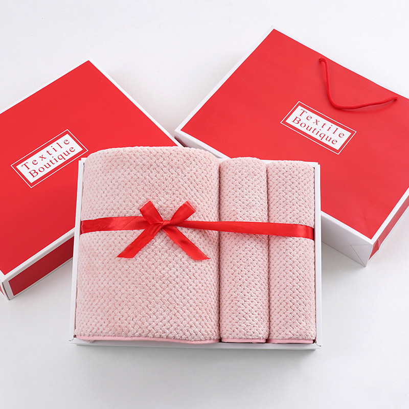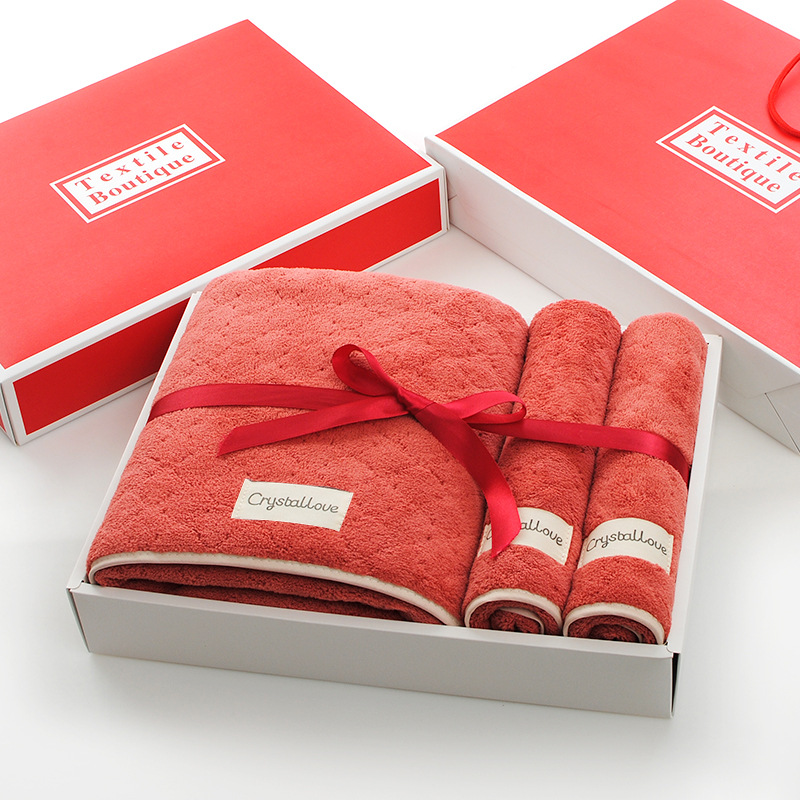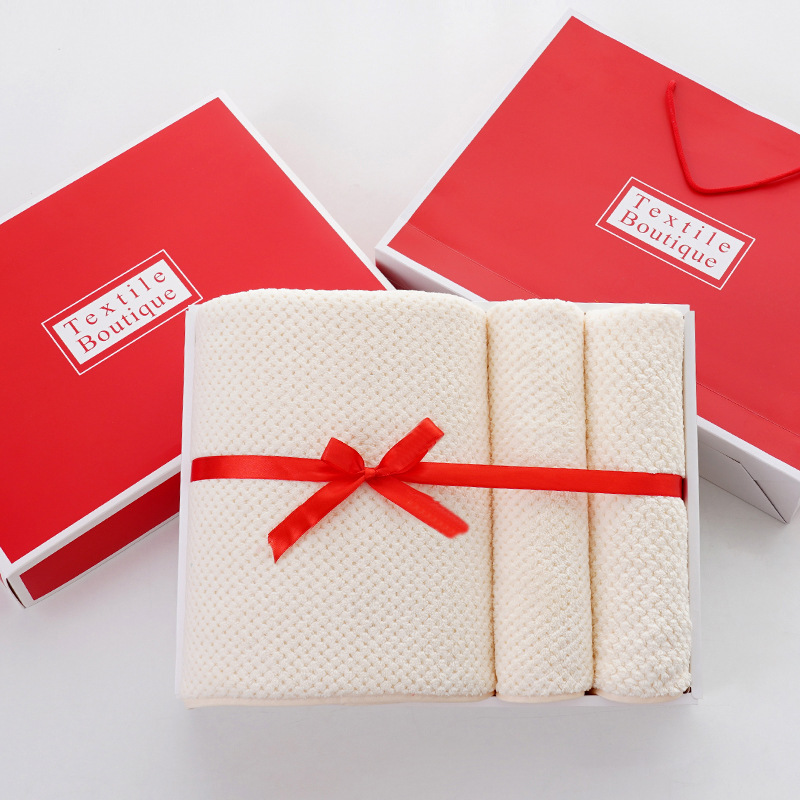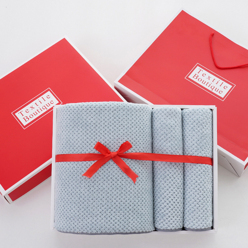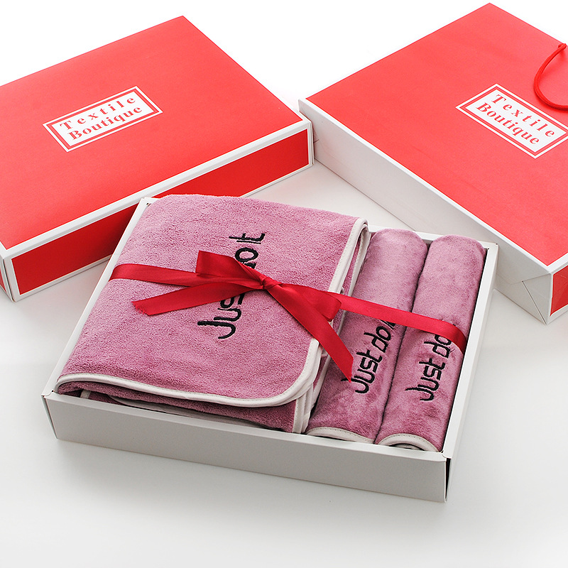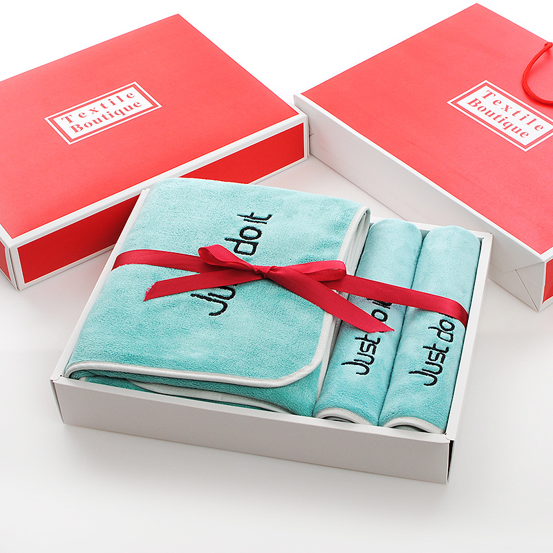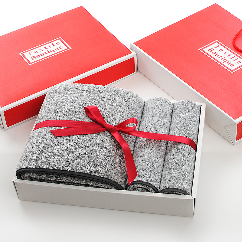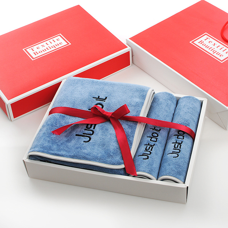 수건 목욕 타월 선물 상자 3 종 세트 생일 생일 생일 결혼식 동반 선물 복지 선물 자수 로고