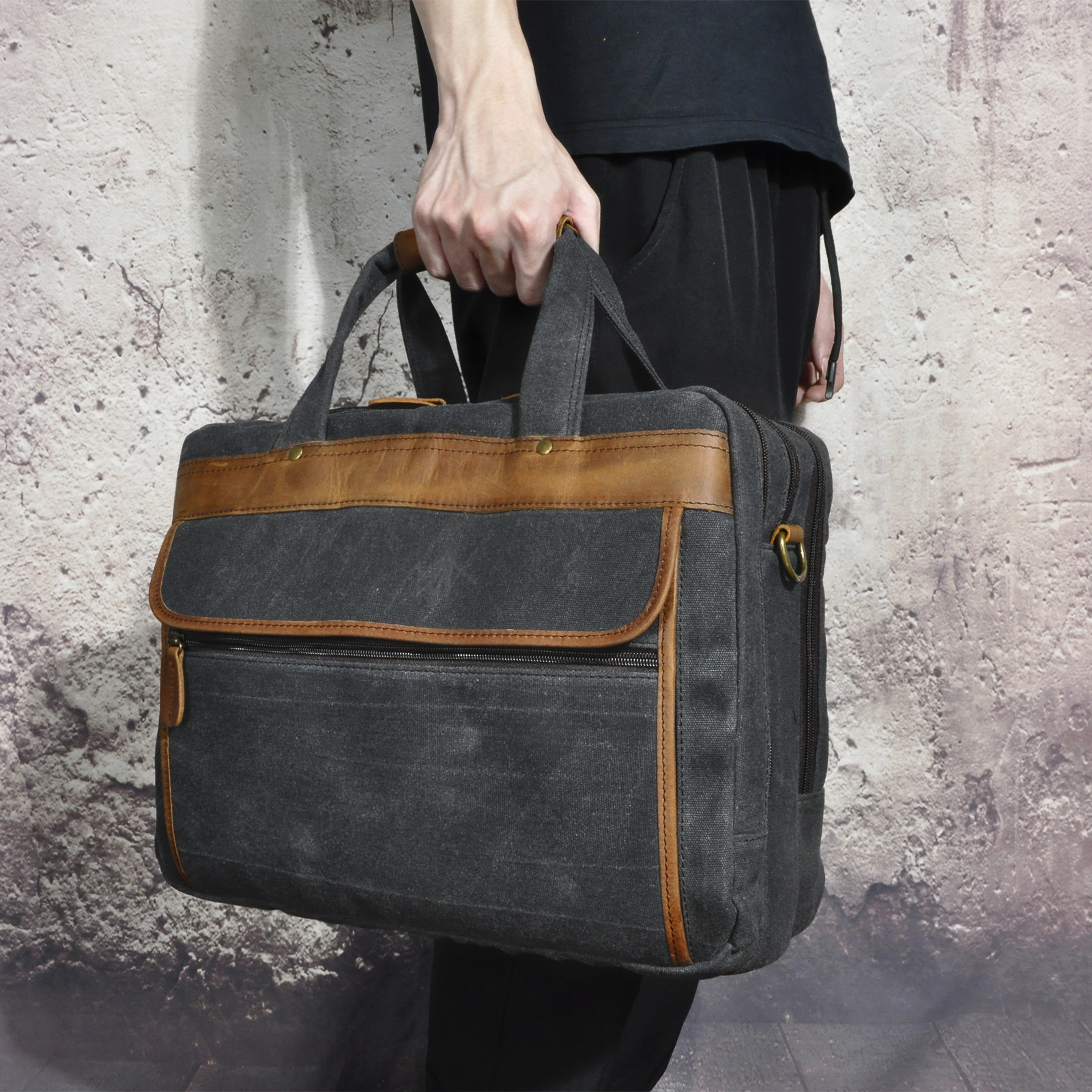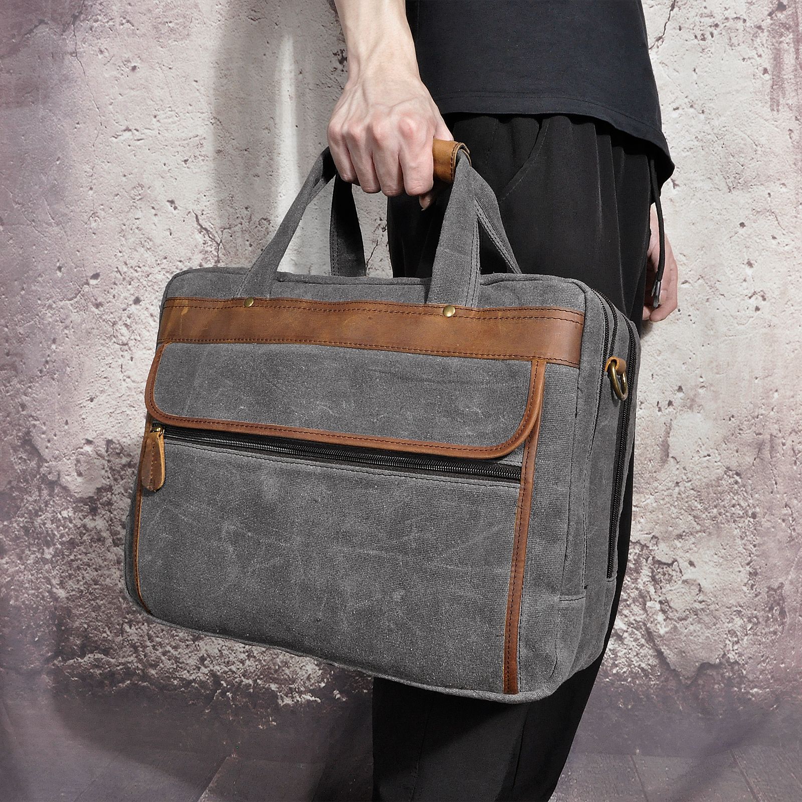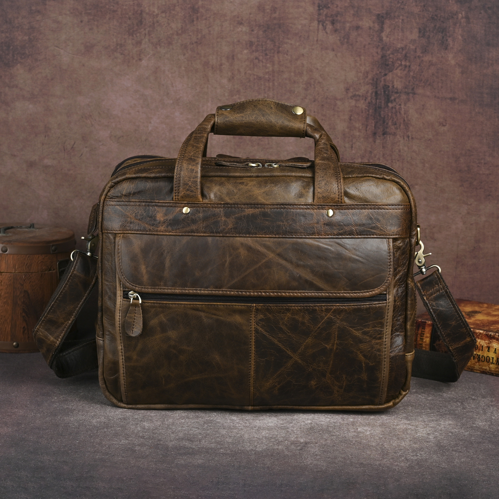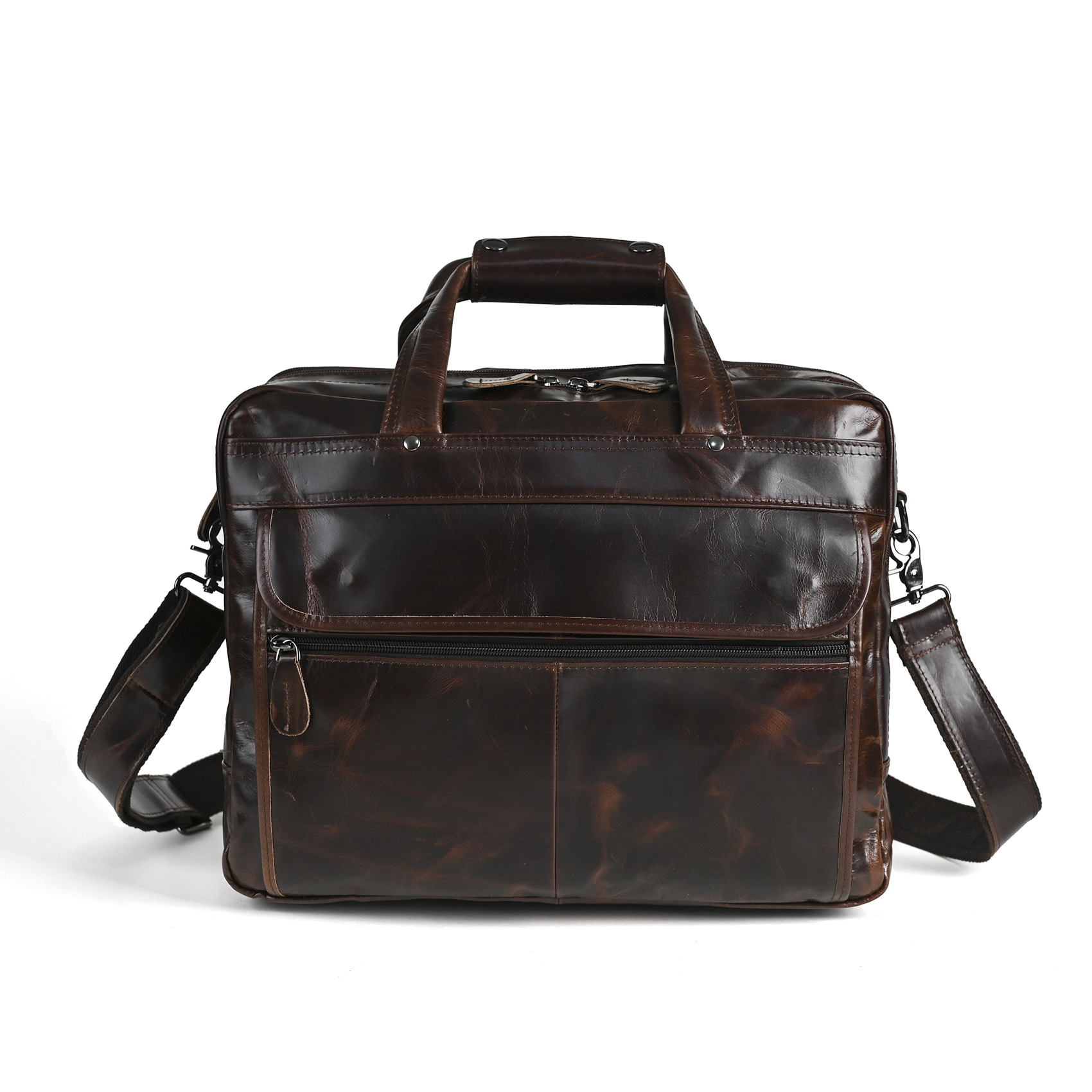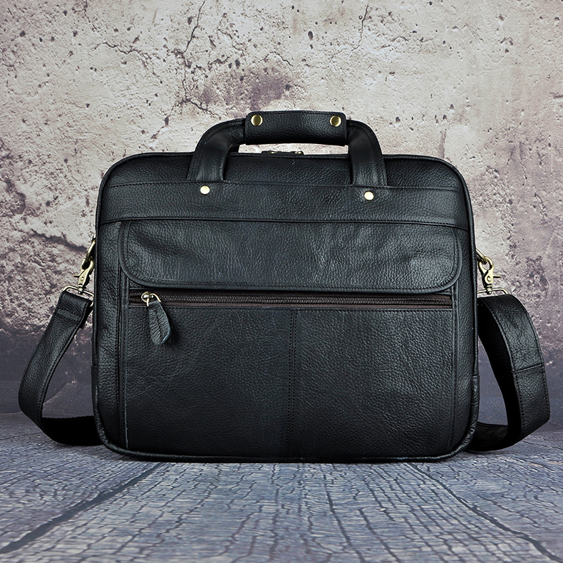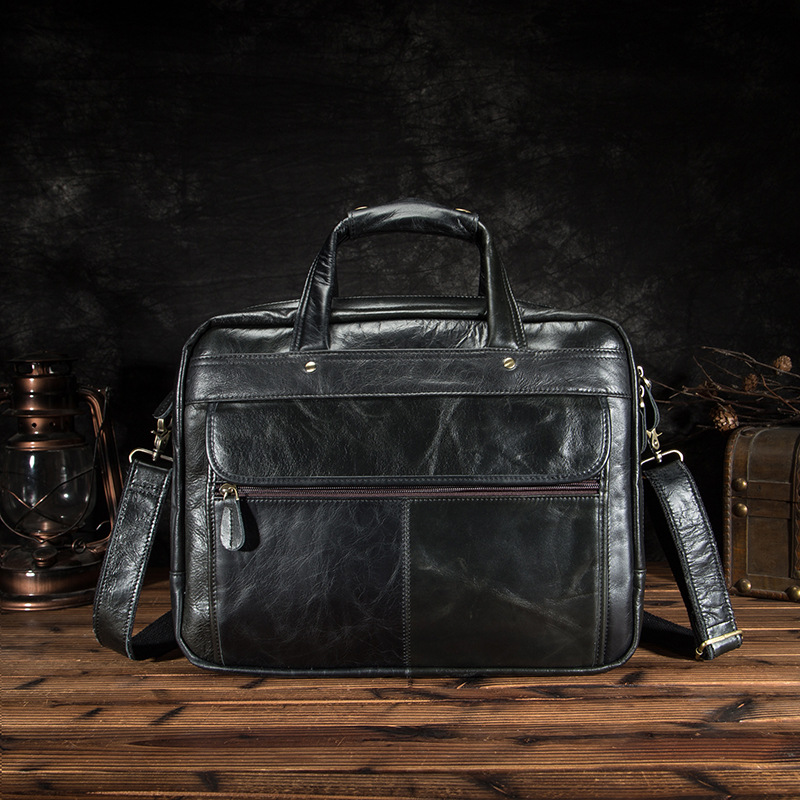 오일 왁스 소가죽의 첫 번째 레이어 대외 무역 유럽과 미국 복고풍 남성 14 인치 비즈니스 휴대용 문서 컴퓨터 가방 B1001스토어 가기
