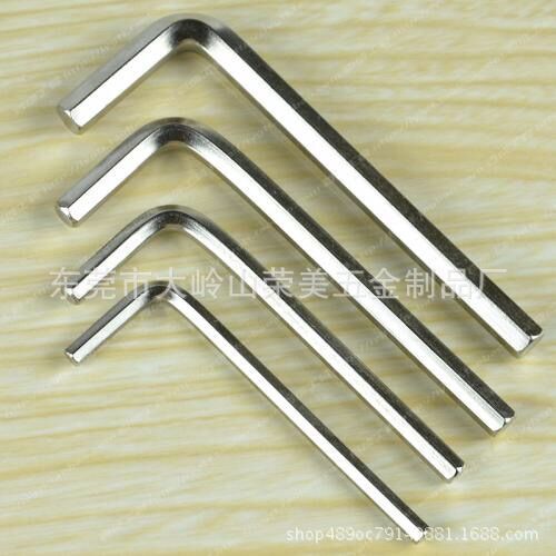 内六角扳手也叫艾伦扳手。常见的英文名称有“Allen key(或Allen wrench)”和“Hex key”(或Hexwrench)。名称中的“wrench”表示“扭”的动作,它体现了内六角扳手和其他常见工具(比如:一字螺丝刀和十字螺丝刀)之间最重要的差别,它通过扭矩施加对螺丝的作用力,大大降低了使用者的用力强度。可以这么说,在现代家具工业所涉及到的安装工具中,内六角扳手虽然不是最常用的,但却是最好用的。 买家须知: 本店产品均为自家工厂自产自销,特点是一手货源价格低,性价比高。 所有产品价格均为出厂价,不含税运,运费请联系客服。 有现货的情况下,本店可以做到买家即拍即发。 本店除上述规格,其它规格均可按照买家要求加工订制,详情可咨询在线客服! 期待与你携手合作,精益求精,共创锦绣前程!