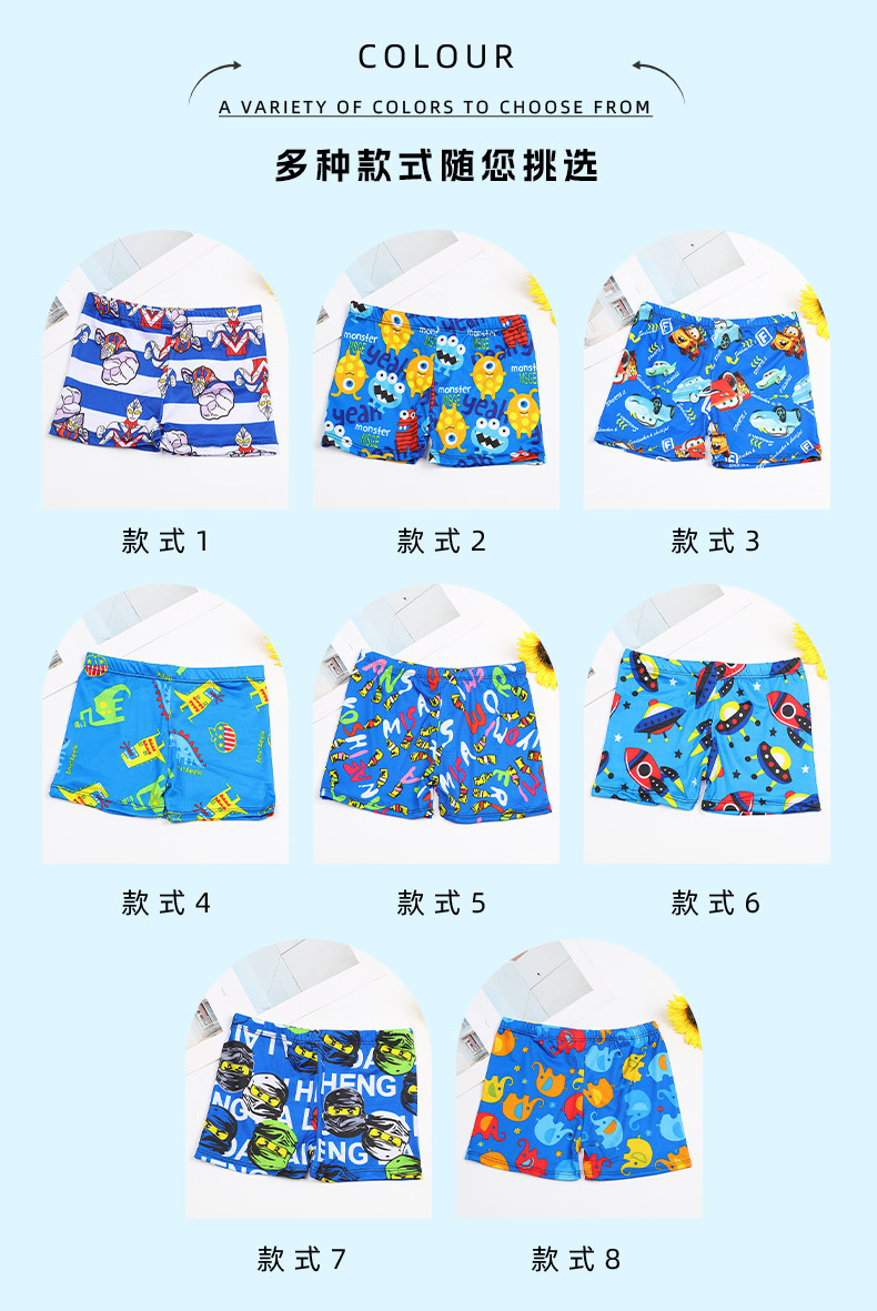 어린이 수영 트렁크 소년 수영복 만화 플랫 앵글 빠른 건조 아기 수영복 큰 소년 한국 온천