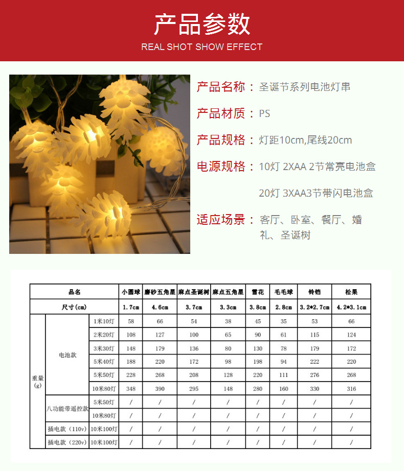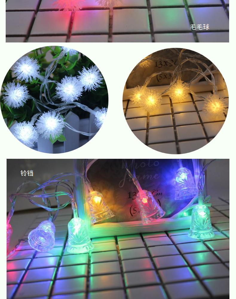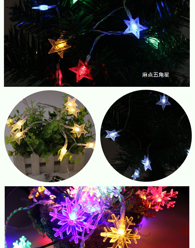雪花造型灯串,铃铛,松果,麻点五角星灯串,儿童房装饰,麻点五角星,小圆球,圣诞树,装饰灯串,小夜灯
