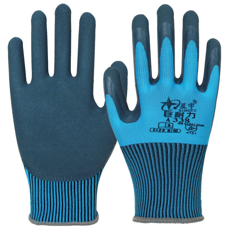 신규 장갑 1 + 1 탄성 스타 더블 라텍스 고탄성 미끄럼 방지 내마모성 젖빛 반 침지 노동 보호 장갑스토어 가기