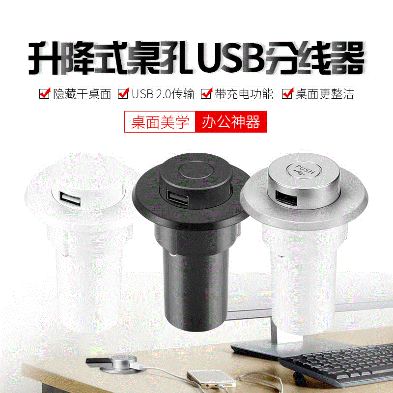 1.办公桌孔USB分线器巧妙利用了办公桌洞隐藏于桌面,带有4个可锁定螺丝孔更加         稳固于桌面,小巧轻便,不占空间,简洁大方就这么轻松