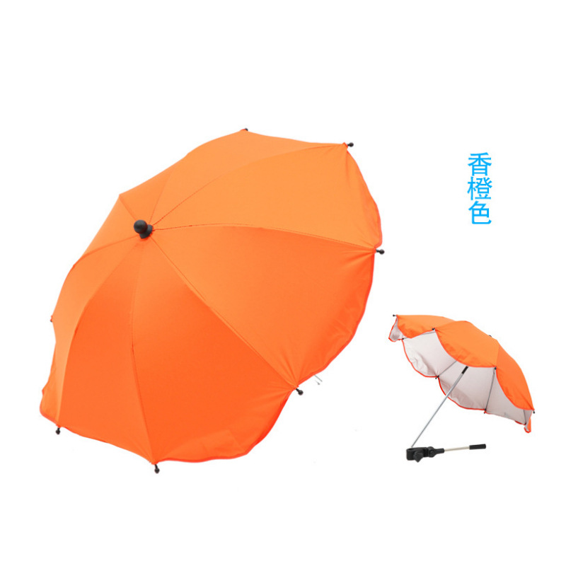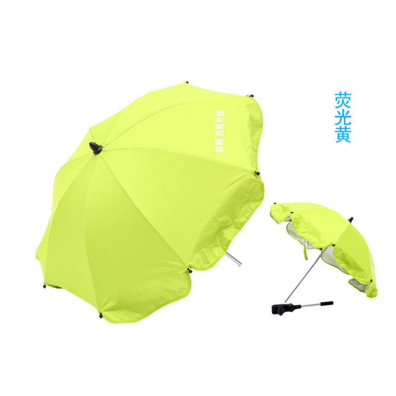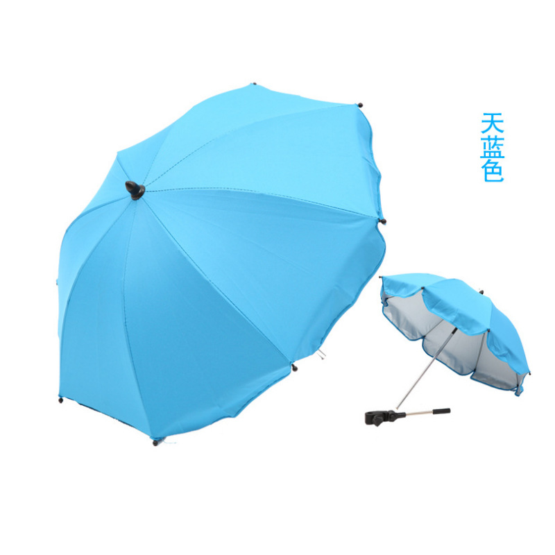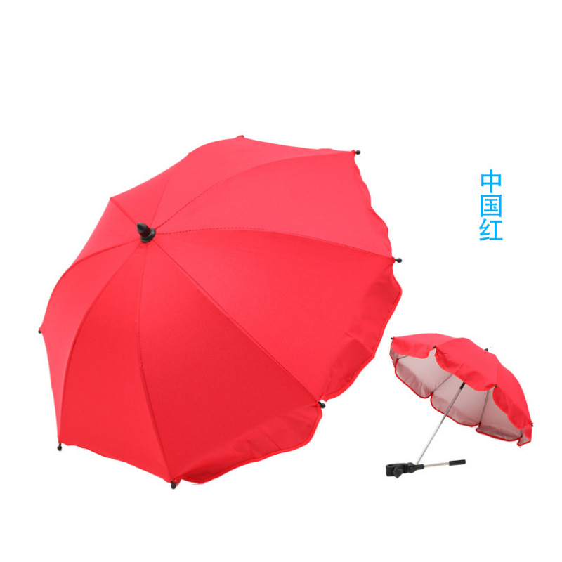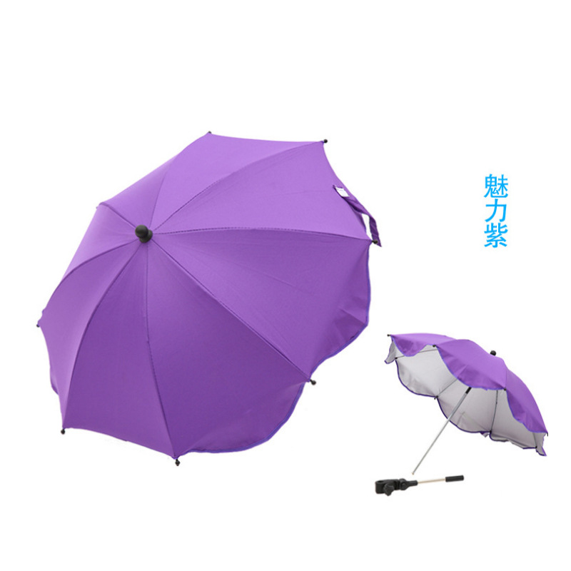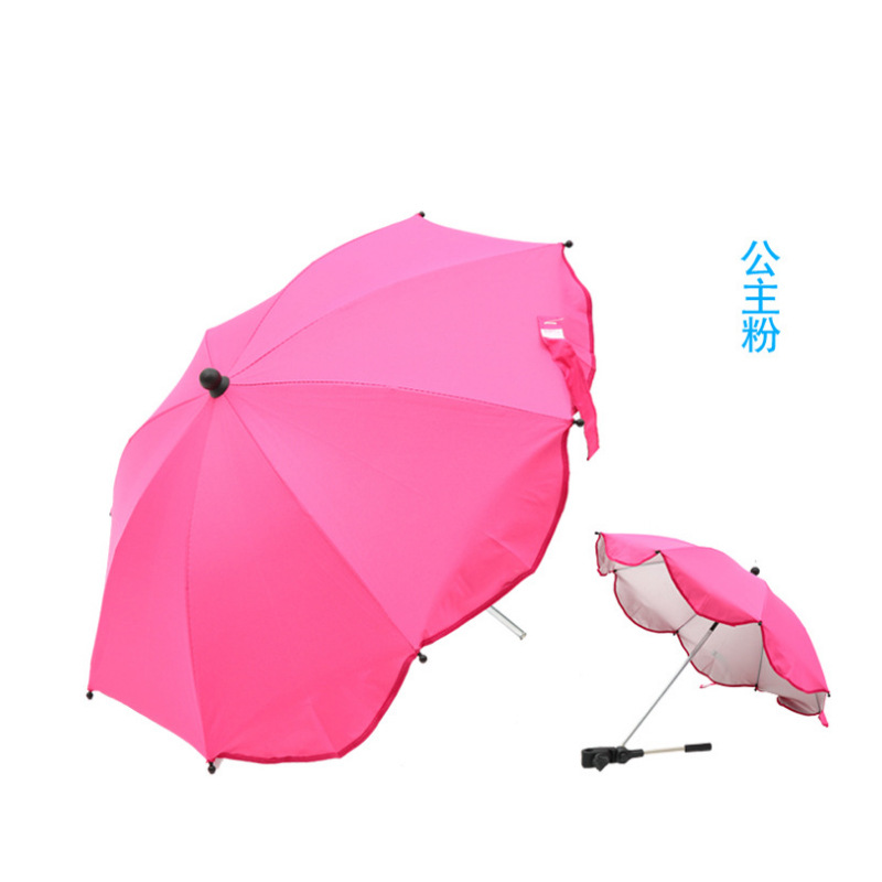 婴儿车通用晴雨伞RS100为您轻松解忧!这是一款专为婴儿外出呼吸新鲜空气免受阳光伤害而设计的童车伞,让您的宝宝安心地接受自然空气的沐浴,保护皮肤免受伤害。连接件可任意调节方向,为宝宝抵挡更多阳光。底座夹具适用于各种管形,您可根据需要随意调节位置,方便更实用。伞柄与底座可分离,也可作普通儿童晴雨伞。荷叶边的设计时尚美观,也增加了无限童趣。婴儿车均可通用,请您放心使用。