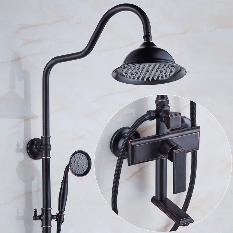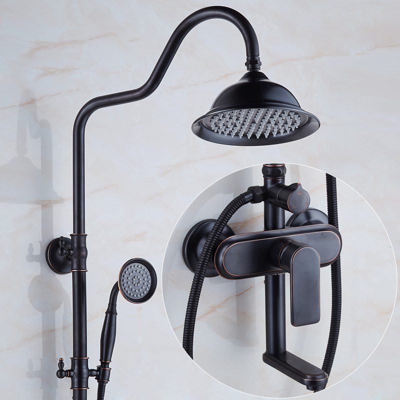 검은 구리 샤워 헤드 세트 미국 검은 색 가정용 욕실 뜨겁고 차가운 스위치 혼합 밸브 개방형 샤워