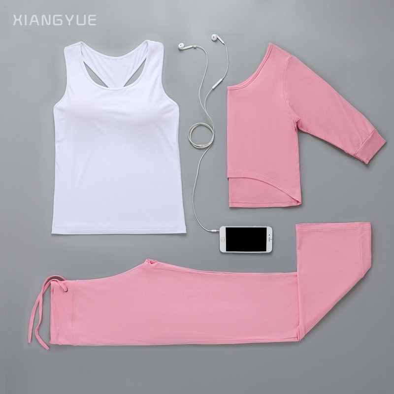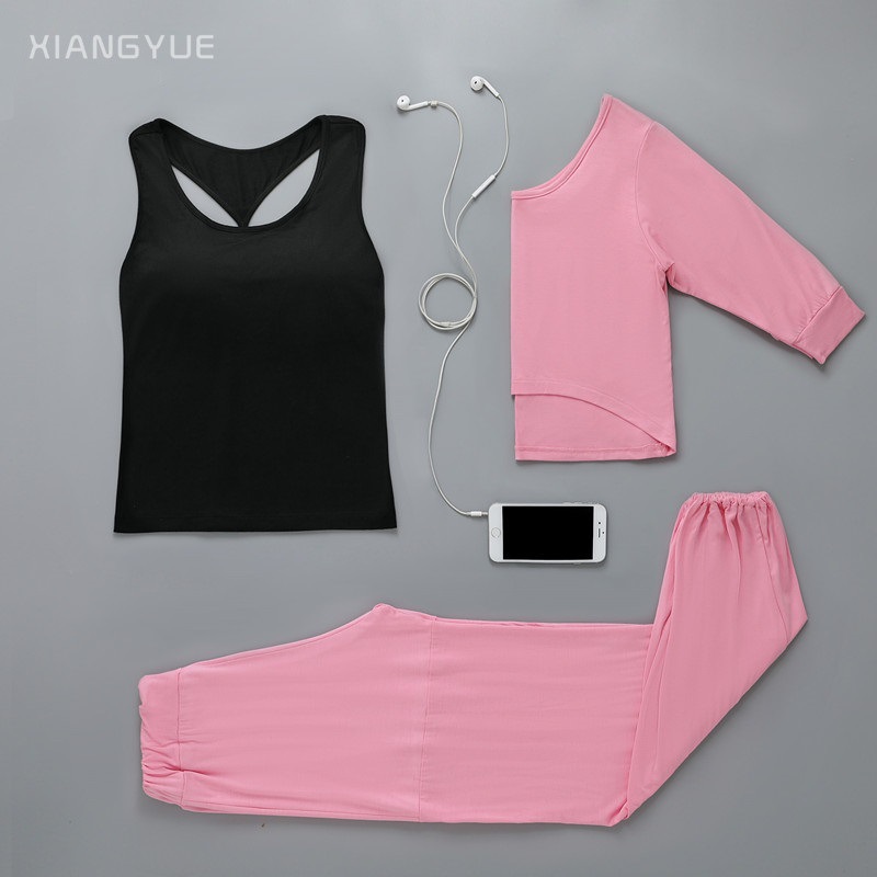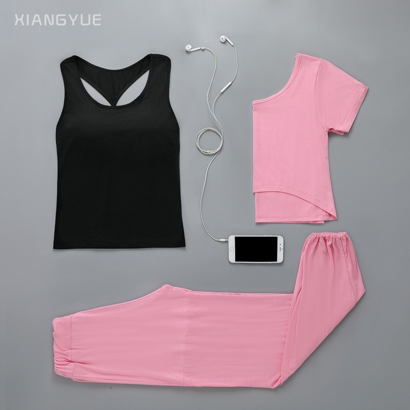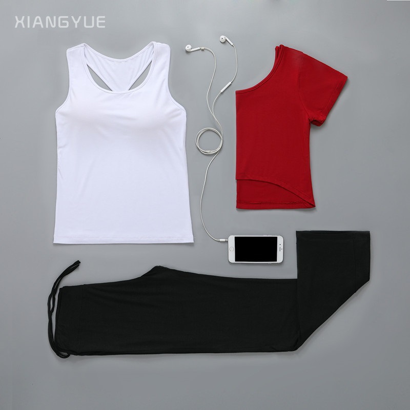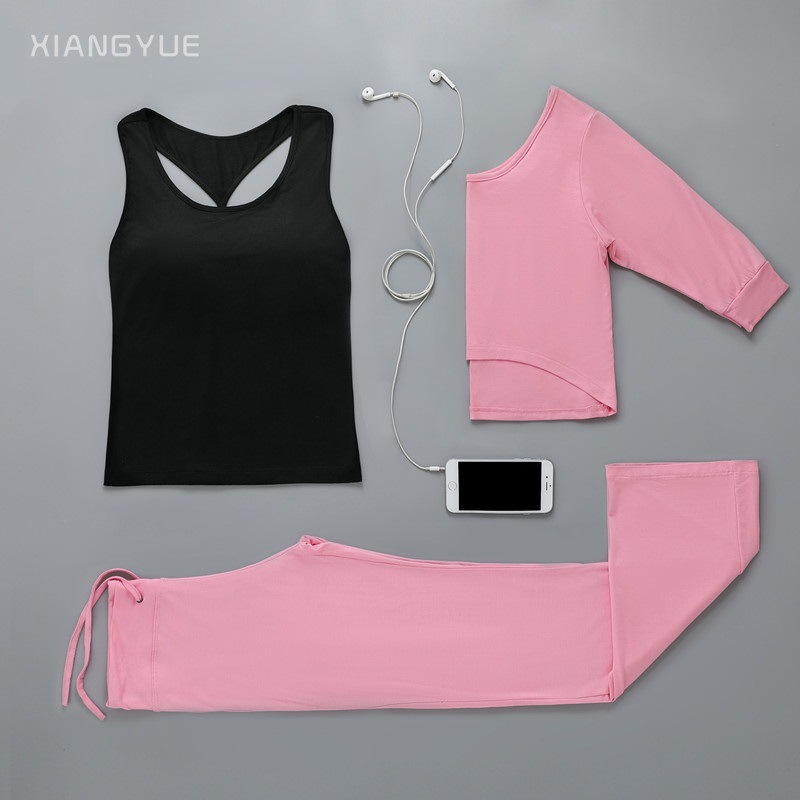 요가 의류 여성의 2021 봄 여름 새로운 요가 의류 피트니스 세트 한국 슬림핏 통기성 쓰리피스 요가 의류스토어 가기