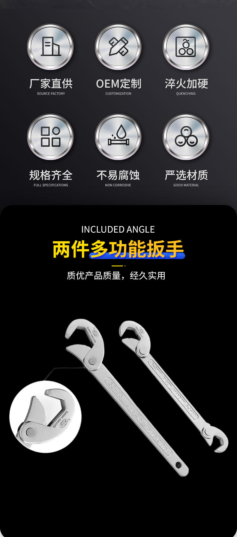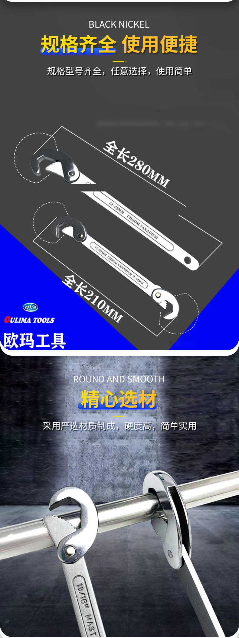 오마툴즈 양두형 수동 대형 오픈형 파이프 렌치 자동차 수리용 하드웨어 수도관 싱크대 렌치 겸용 렌치