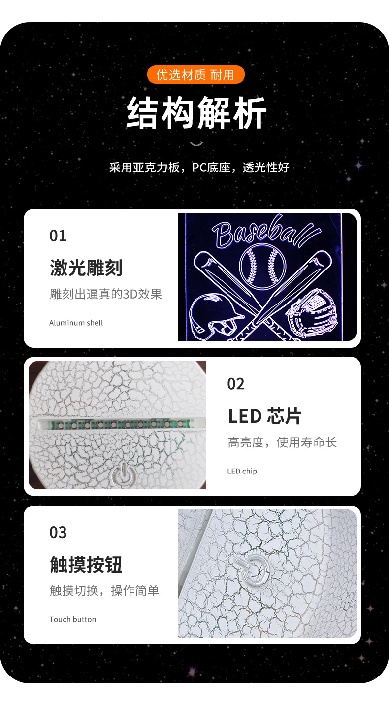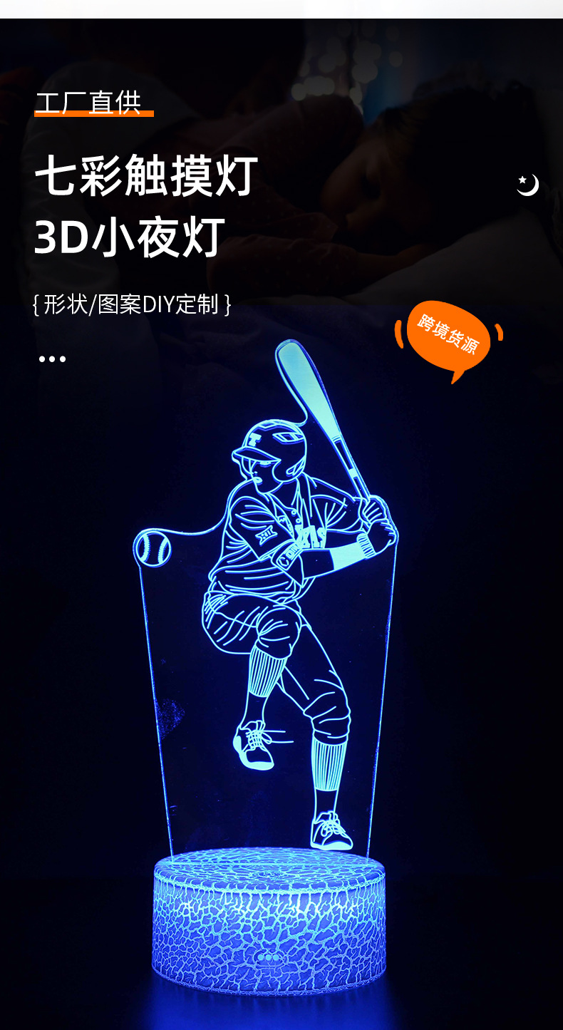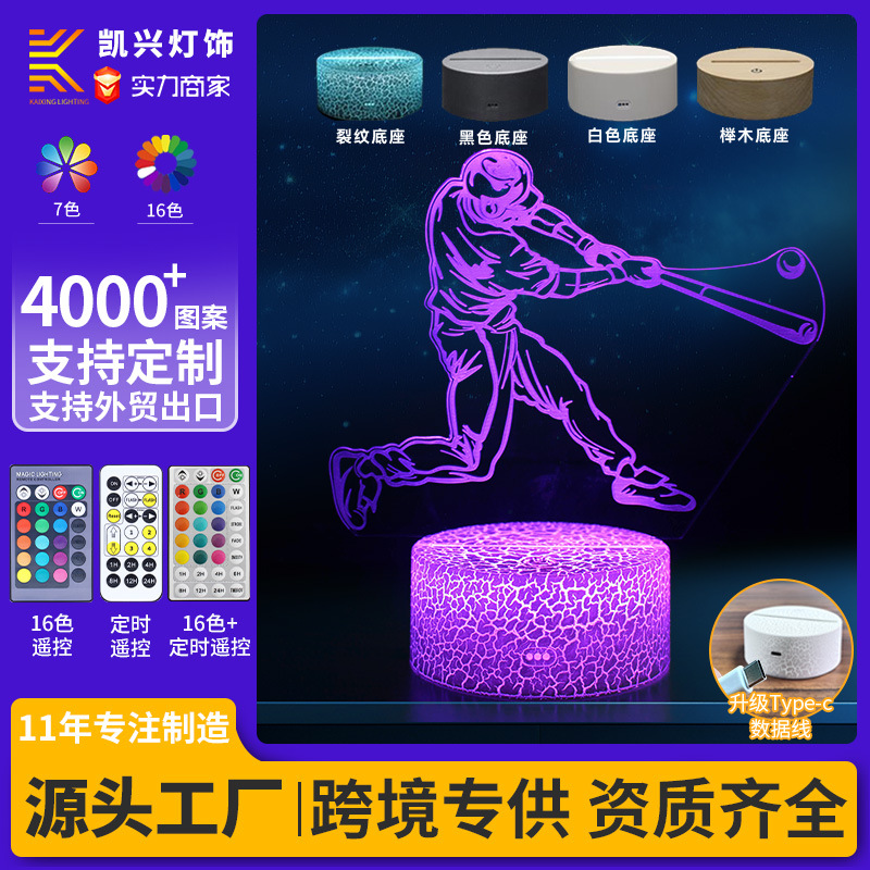 국경 간 미국 메이저 리그 야구 모자 야구 선수 시리즈 3D 야간 조명 LED 테이블 램프