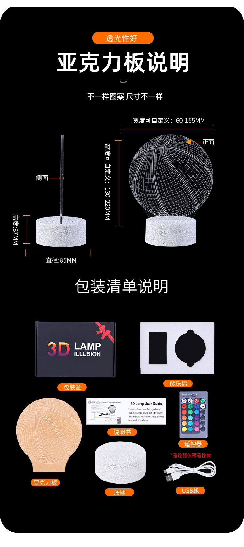 • 단일 조각 4MM 아크릴 판(베이스 제외)