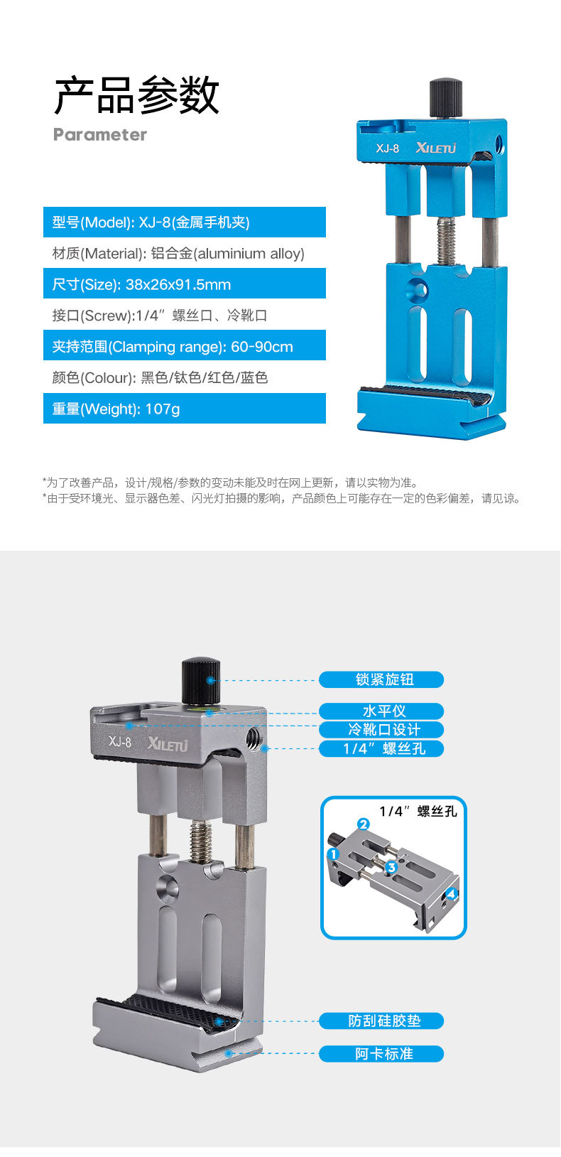 행복 XJ-8 2 세대 알루미늄 합금 휴대 전화 클립 사진 삼각대 헤드 휴대 전화 고정 클립스토어 가기