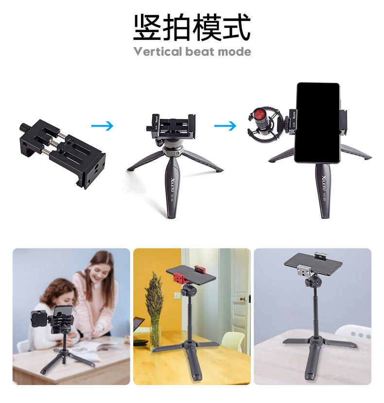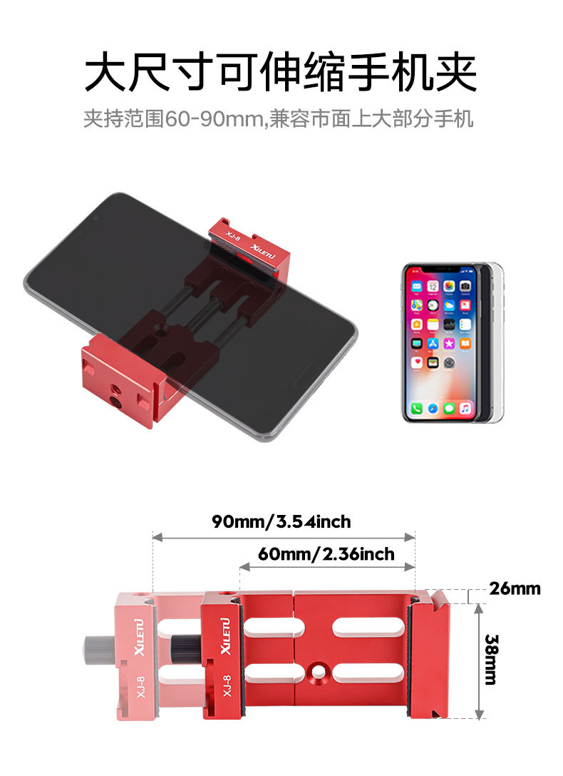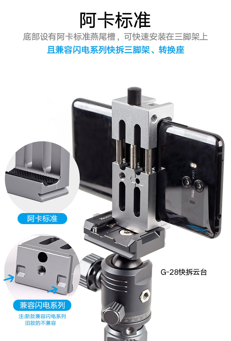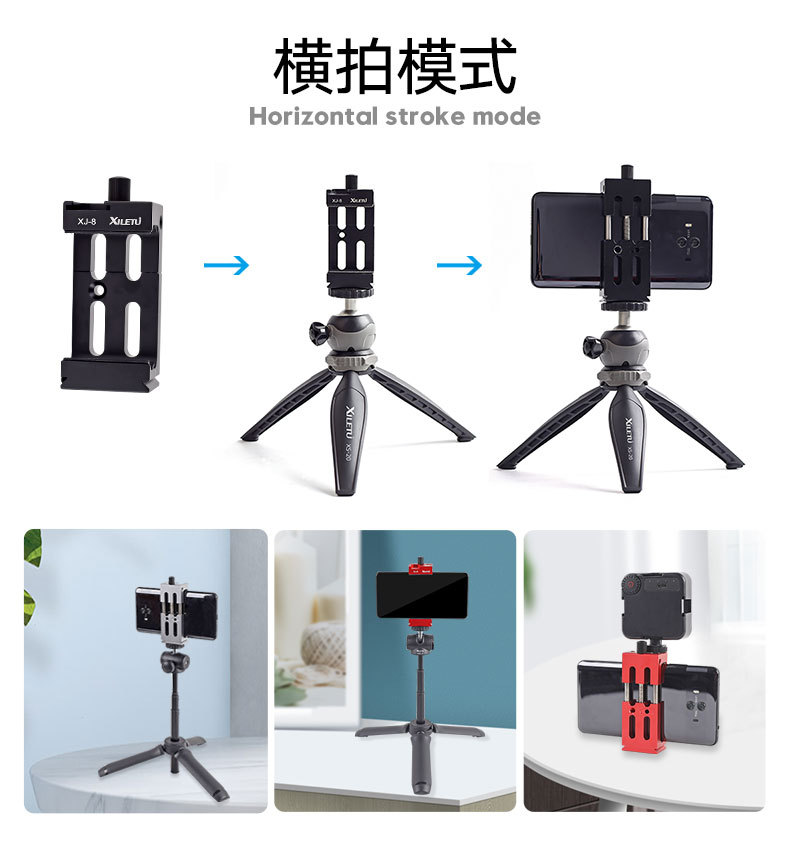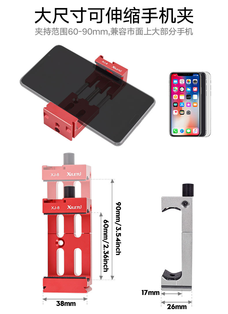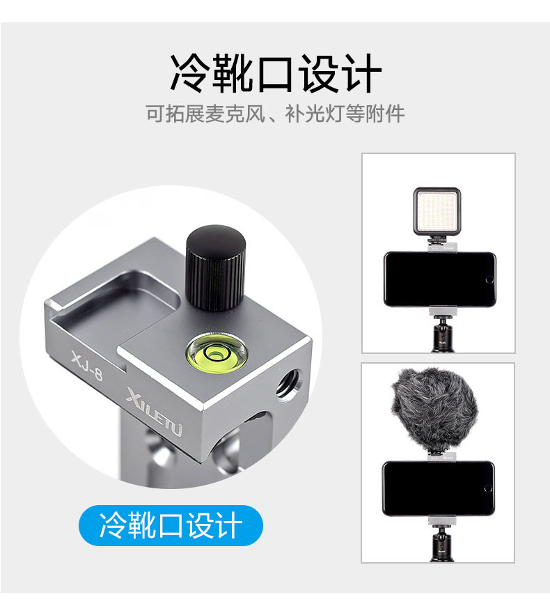행복 XJ-8 2 세대 알루미늄 합금 휴대 전화 클립 사진 삼각대 헤드 휴대 전화 고정 클립