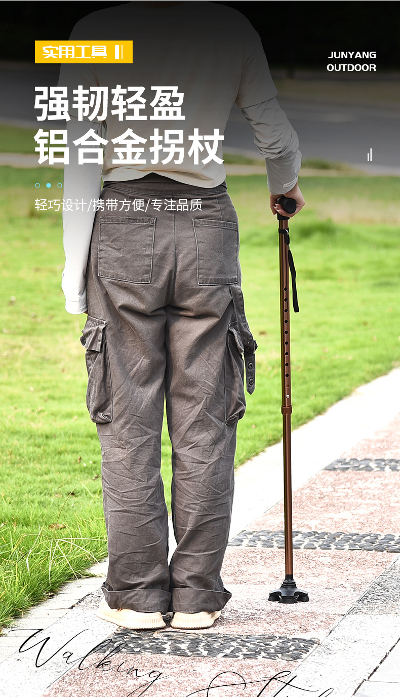 두꺼운 알루미늄 합금 개폐식 4 족 목발, 높이 조절 가능 워킹 스틱 노인용 미끄럼 방지 등반 스틱스토어 가기