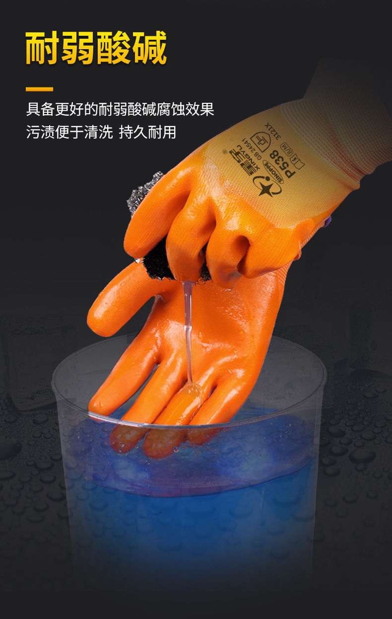 우정공장 직판 신규 P538PVC 내마모성 미끄럼 방지 침투 무취 산 및 알칼리 방지 고무 노동 장갑
