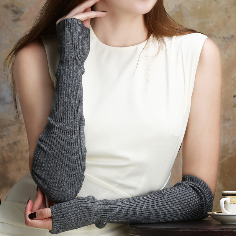 가을과 겨울 여성의 긴 두꺼운 따뜻한 캐시미어 니트 손가락 새는 소매 장갑 암 캐시미어 슬리브 여성용스토어 가기