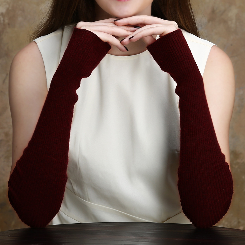 가을과 겨울 여성의 긴 두꺼운 따뜻한 캐시미어 니트 손가락 새는 소매 장갑 암 캐시미어 슬리브 여성용