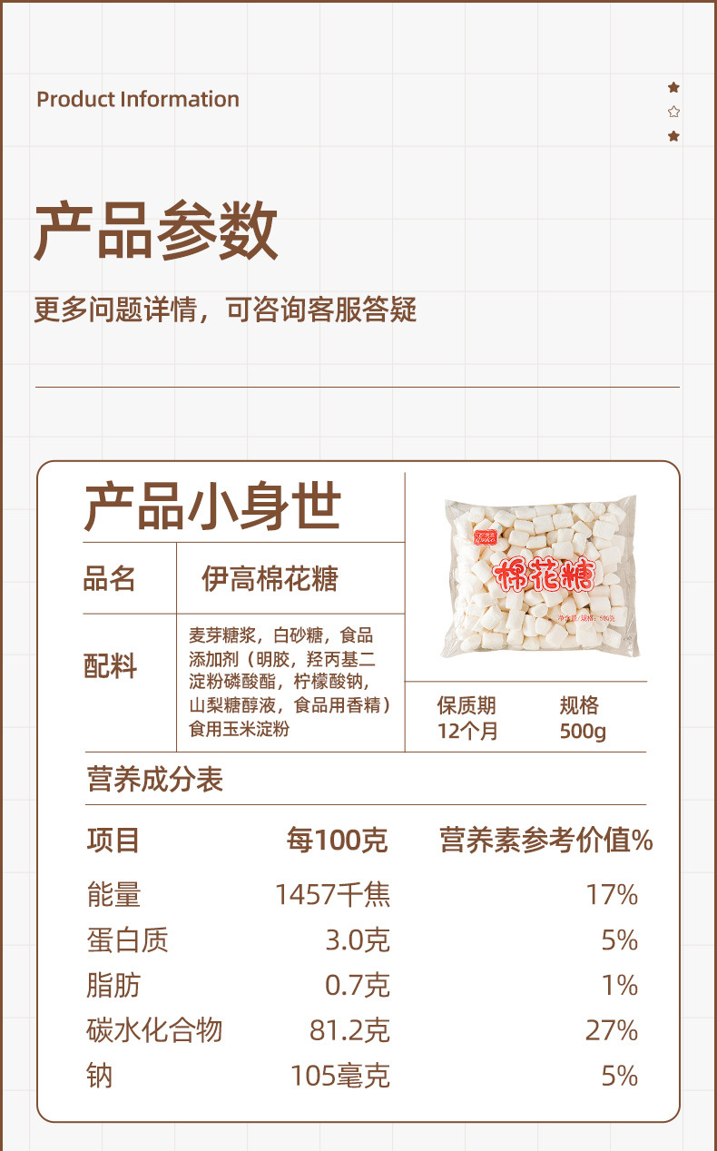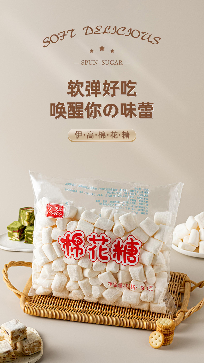이하타니 오리지널 마시멜로 500g DIY 누가 캔디 눈꽃 케이크 원료 젤리 Q탄성 즉석식품 무료배송스토어 가기