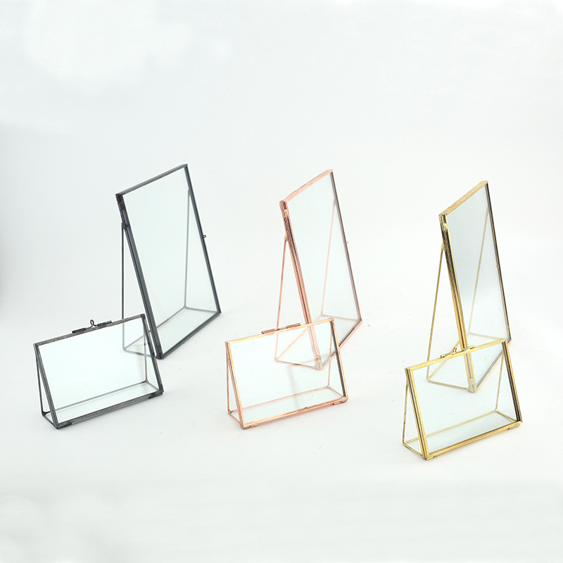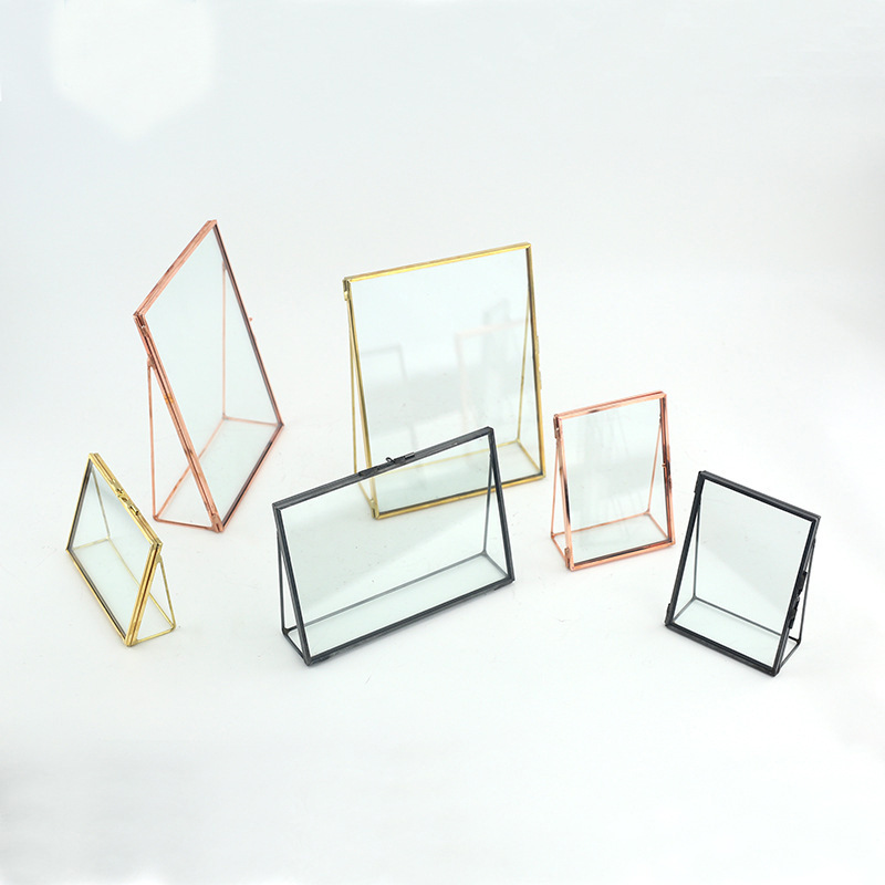 유럽식 레트로 유리 사진 프레임 디스플레이 카드 테이블 표시 깃털 식물 표본 클립 웨딩 사진 장식 사진 프레임 세트 테이블