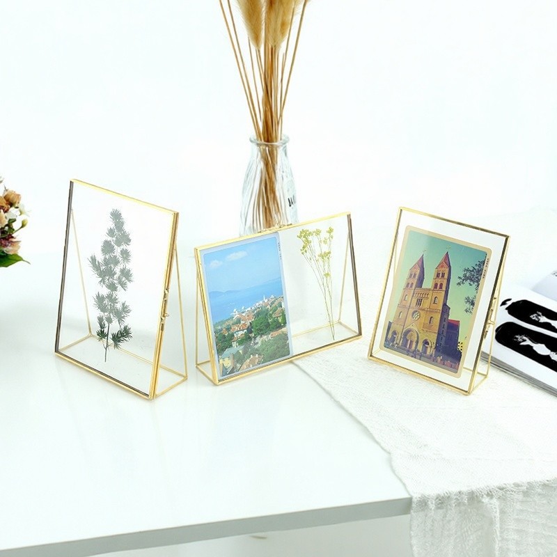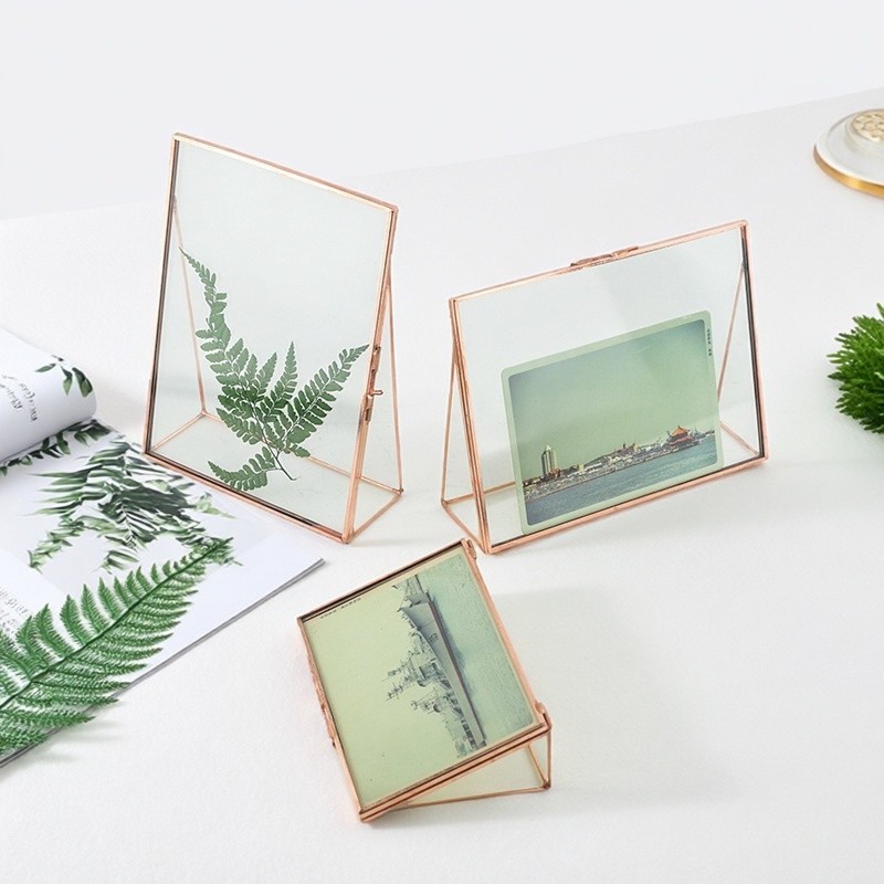 유럽식 레트로 유리 사진 프레임 디스플레이 카드 테이블 표시 깃털 식물 표본 클립 웨딩 사진 장식 사진 프레임 세트 테이블스토어 가기