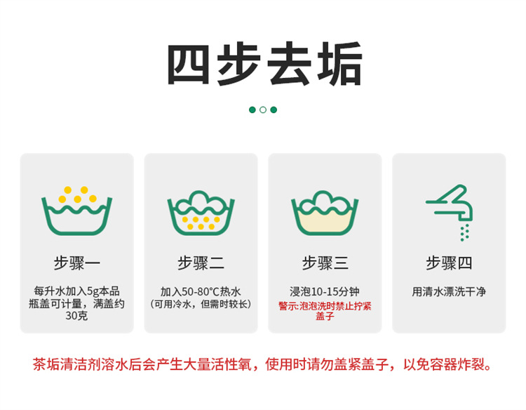 산소 청소 차 저울 클리너 찻주전자 차 세트 물 컵 스케일 제거제 차 얼룩 분말 컵 세척제
