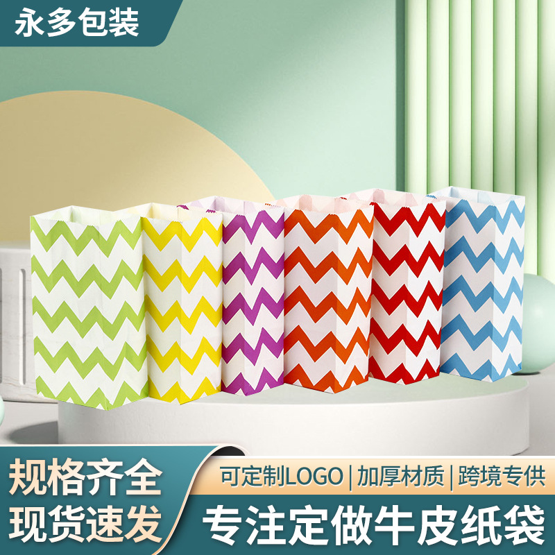 크로스 보더 재고 캔디 컬러 크래프트 종이 가방 쇼핑 선물 가방 테이크 아웃 포장 휴대용 종이 가방