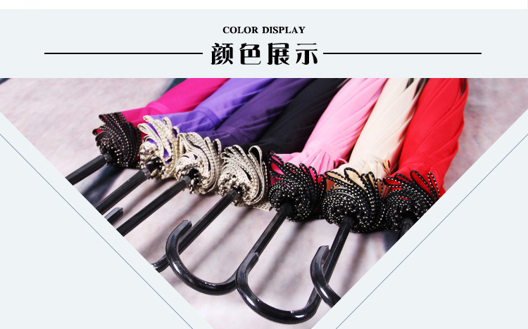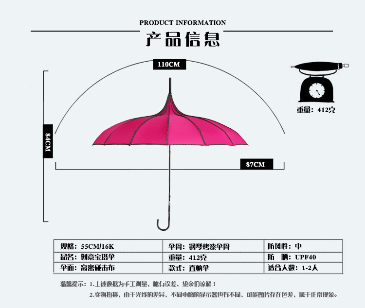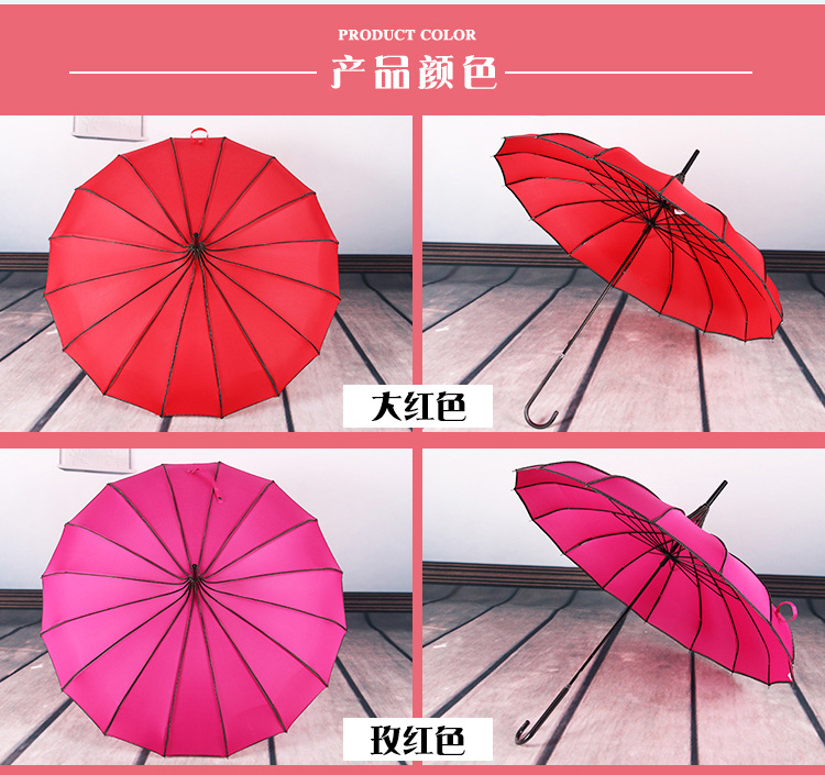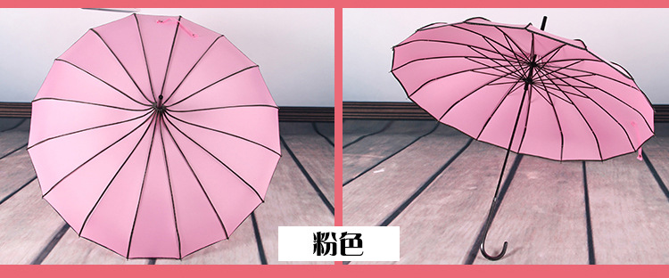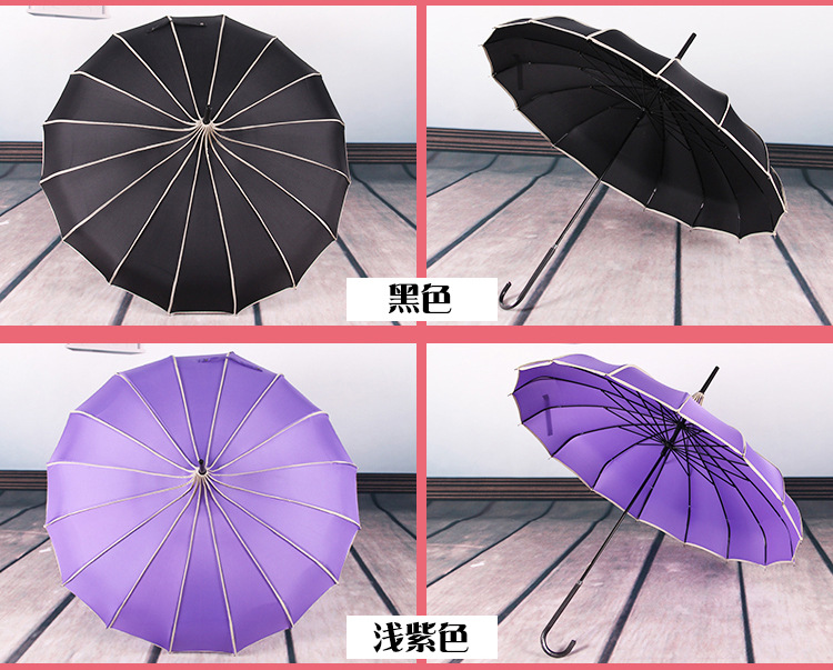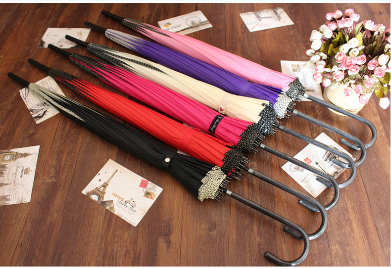 창의적인 레트로 탑형 우산, 가장자리가 처리된 16개의 직선형 긴 손잡이가 있는 귀여운 한국 공주 스타일의 양산, 비와 햇빛 모두를 막아주는 우산스토어 가기
