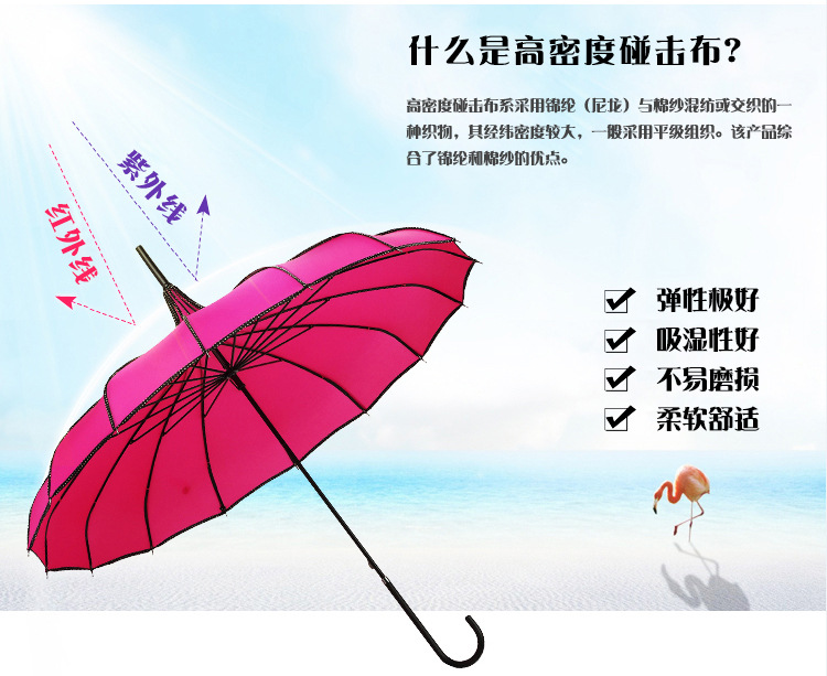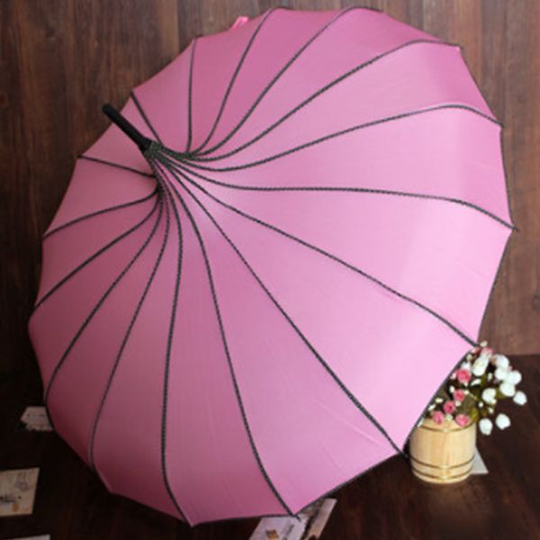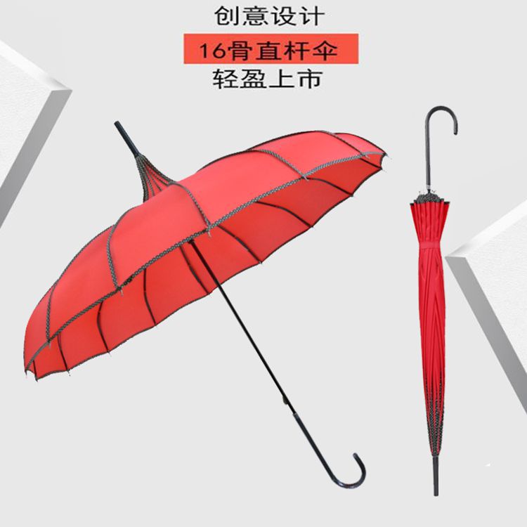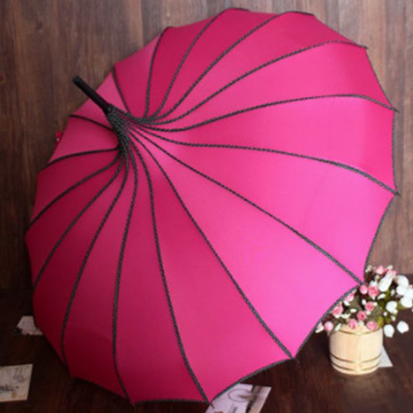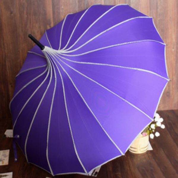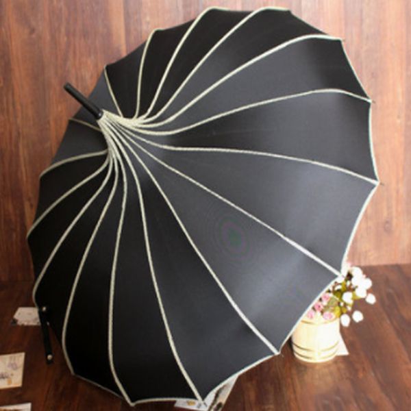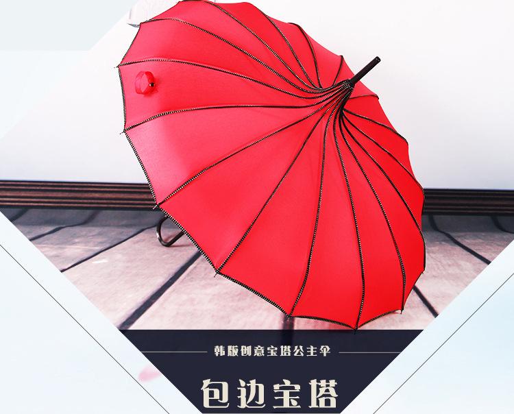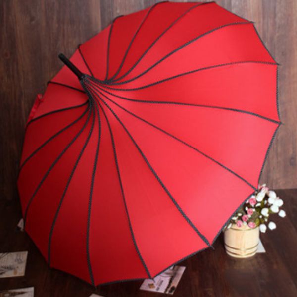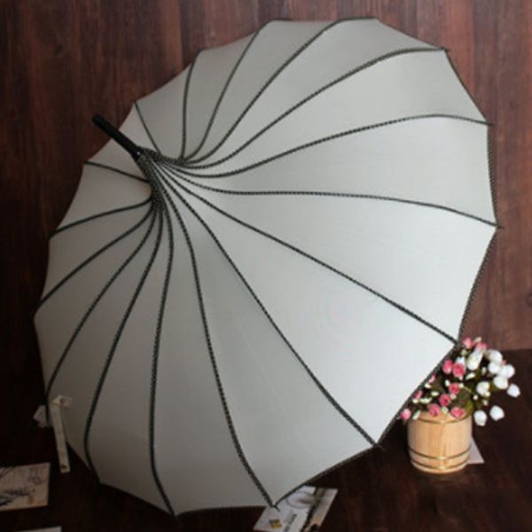 창의적인 레트로 탑형 우산, 가장자리가 처리된 16개의 직선형 긴 손잡이가 있는 귀여운 한국 공주 스타일의 양산, 비와 햇빛 모두를 막아주는 우산