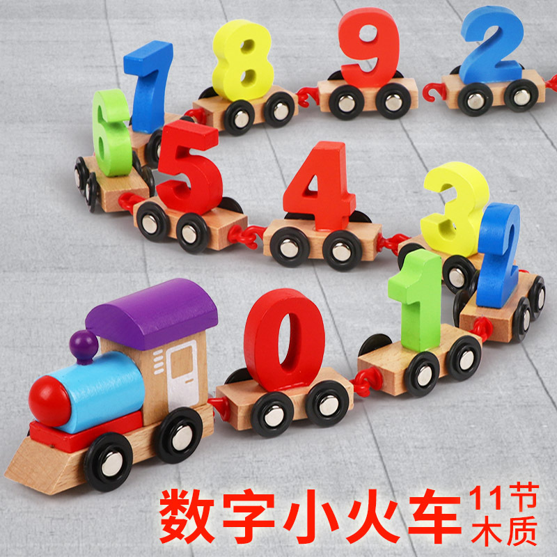 11节榉木小火车,光滑无毛刺,木制环保健康,宝宝玩耍中认知颜色 数字,宝宝小车玩具不二选择